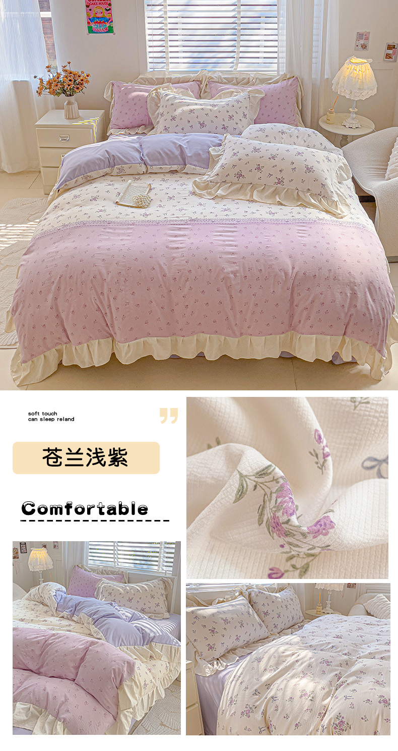 当前位置: 91家纺网 > 商品网购 > 床品套件 > 四件套 > 双层纱四件套 > 金梦拉2025新款云朵泡泡纱韩系小碎花格纹系列皱皱纱四件套 苍兰浅紫