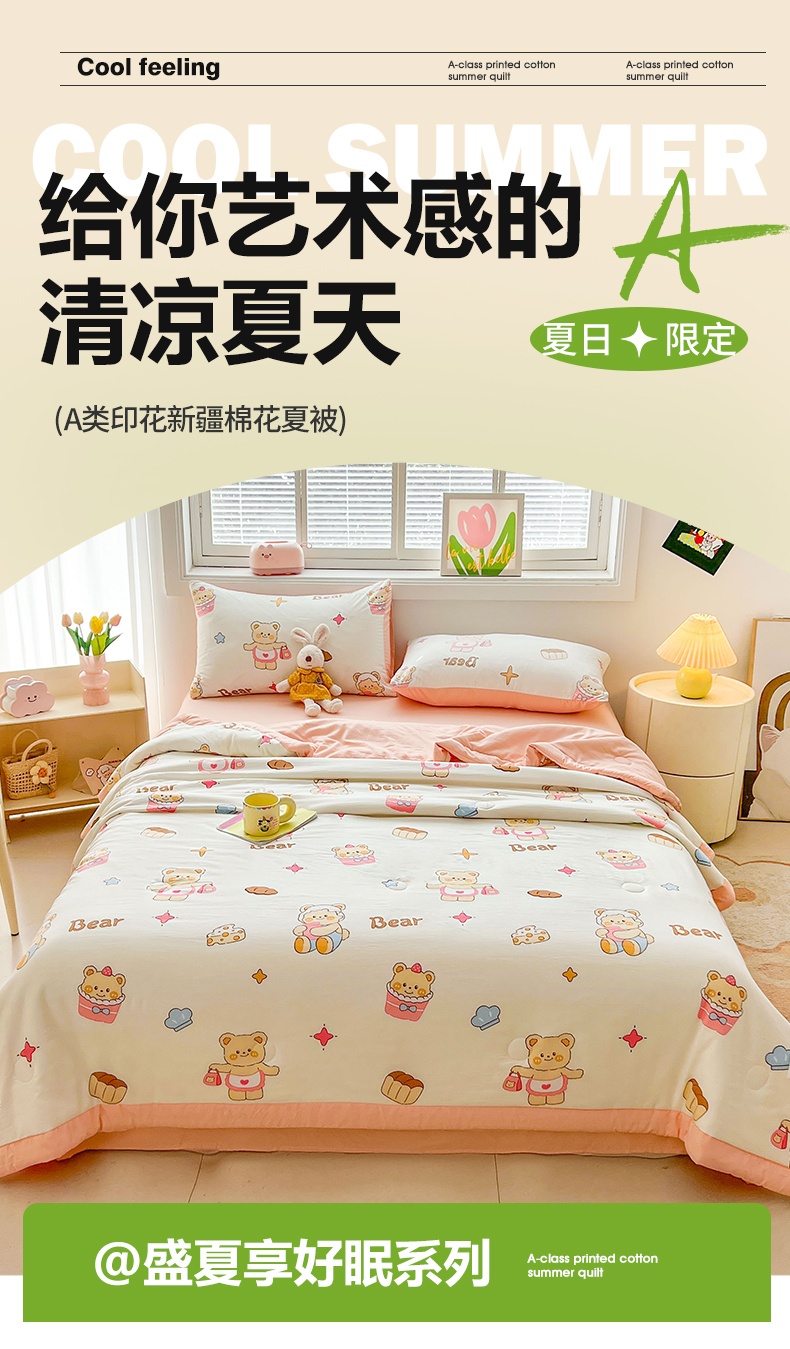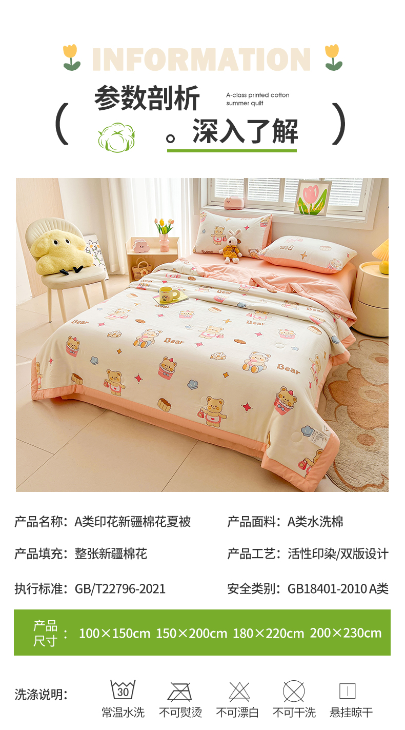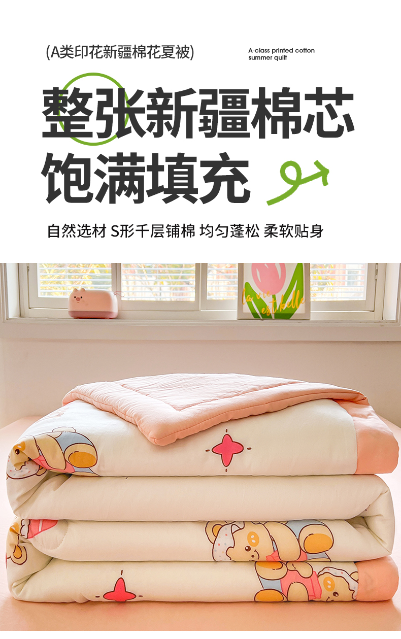 商品名称:晓时候 2025新款水洗棉夏被新疆棉花被夏凉被空调被被子被芯 黄油小熊