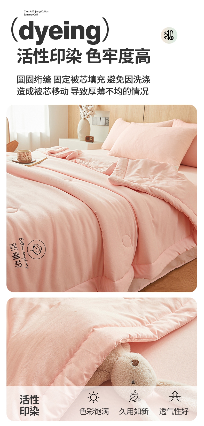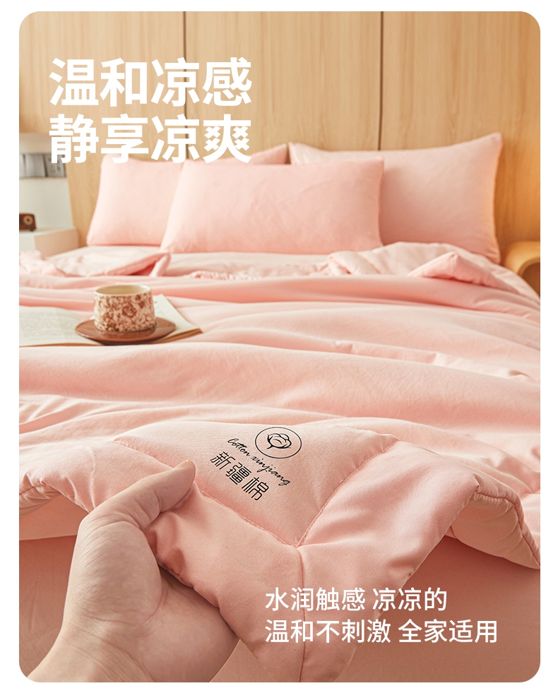 晓时候 2025新款无印风水洗棉新疆棉花被夏被夏凉被空调被子 素夏-少女粉