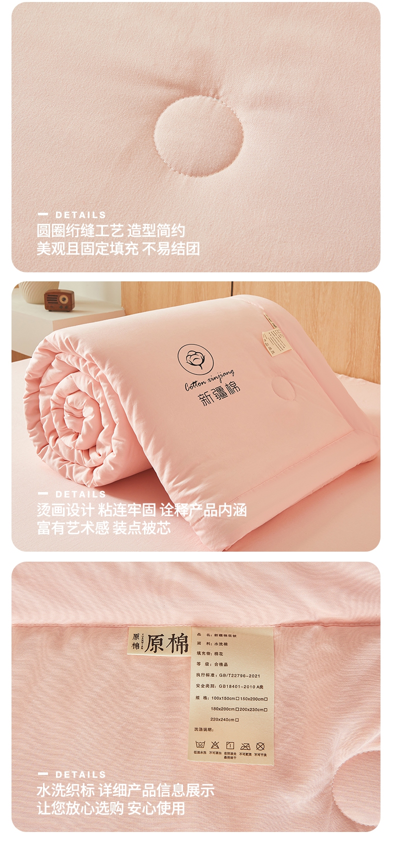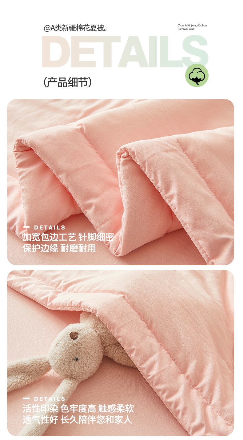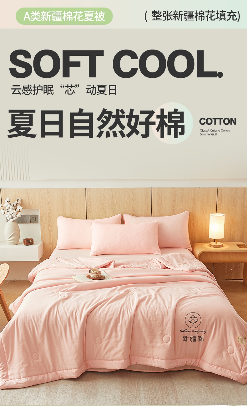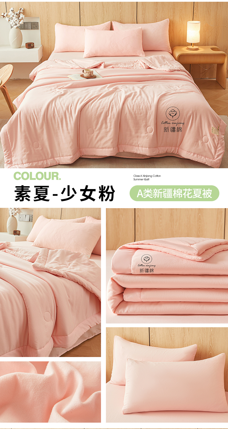 商品名称:晓时候 2025新款无印风水洗棉新疆棉花被夏被夏凉被空调被子 素夏-少女粉