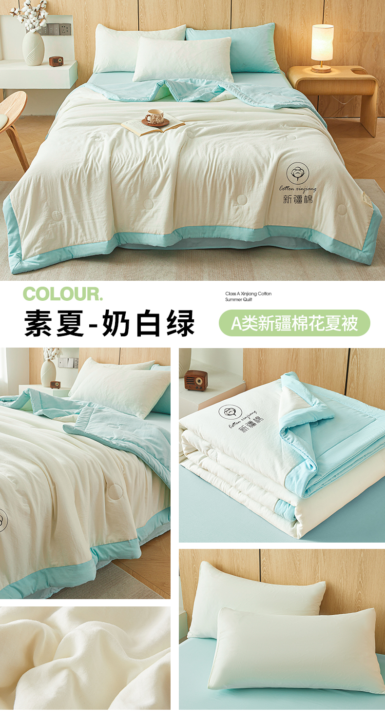 (总)晓时候 2025新款纯色无印风新疆棉花被冬被春秋被夏被四季被子被芯-常年有货(含买家秀),白粉,白果绿,白灰,白蓝,白紫,粉绿,蓝黄,抹茶绿,奶白,奶白绿,浅灰,少女粉,水蓝,天蓝
