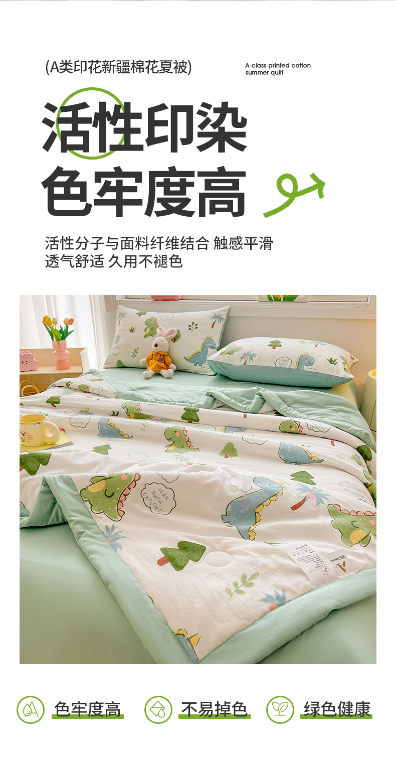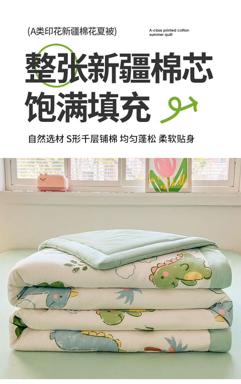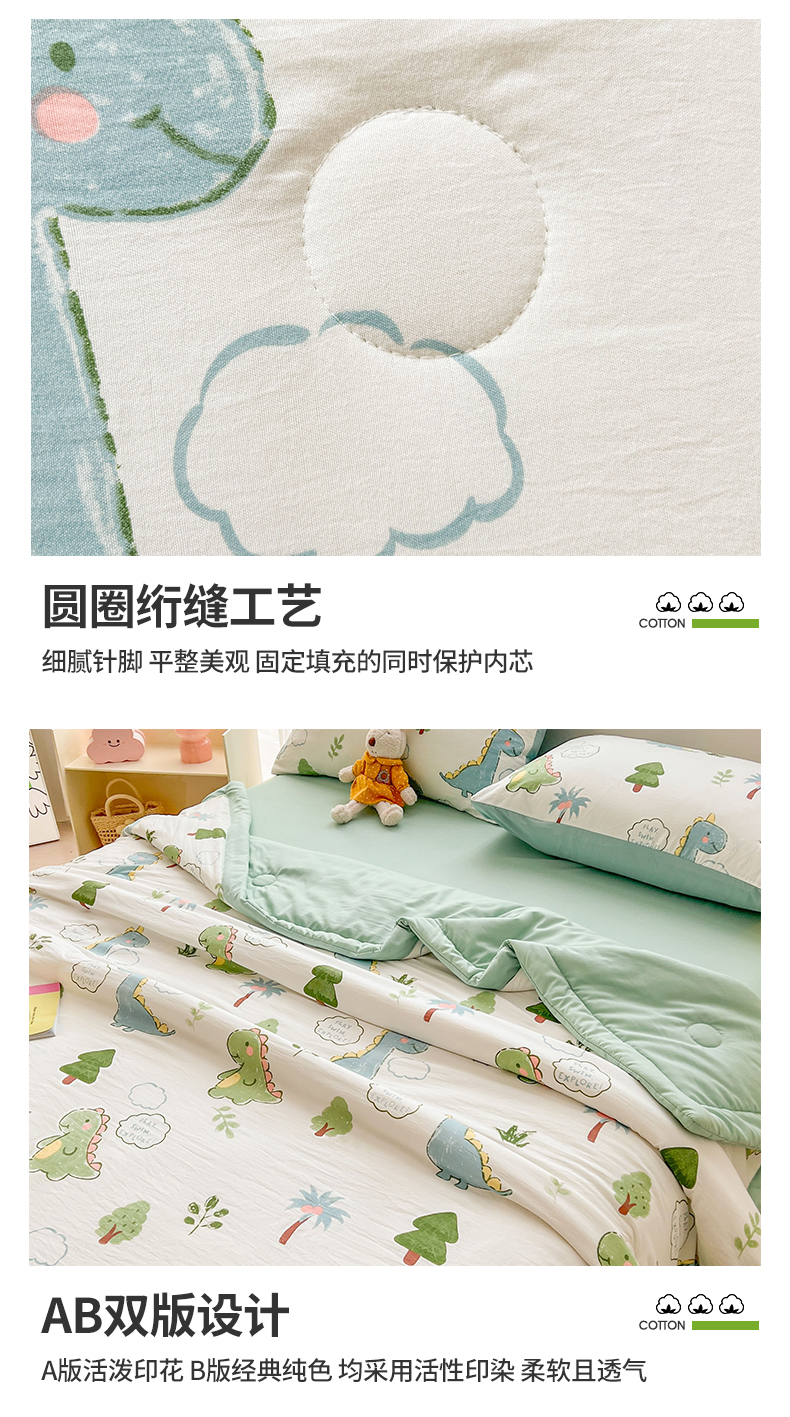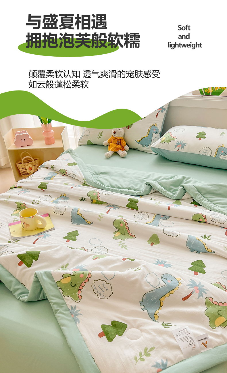商品名称:晓时候 2025新款水洗棉夏被新疆棉花被印花夏凉被空调被薄被子 恐龙乐园