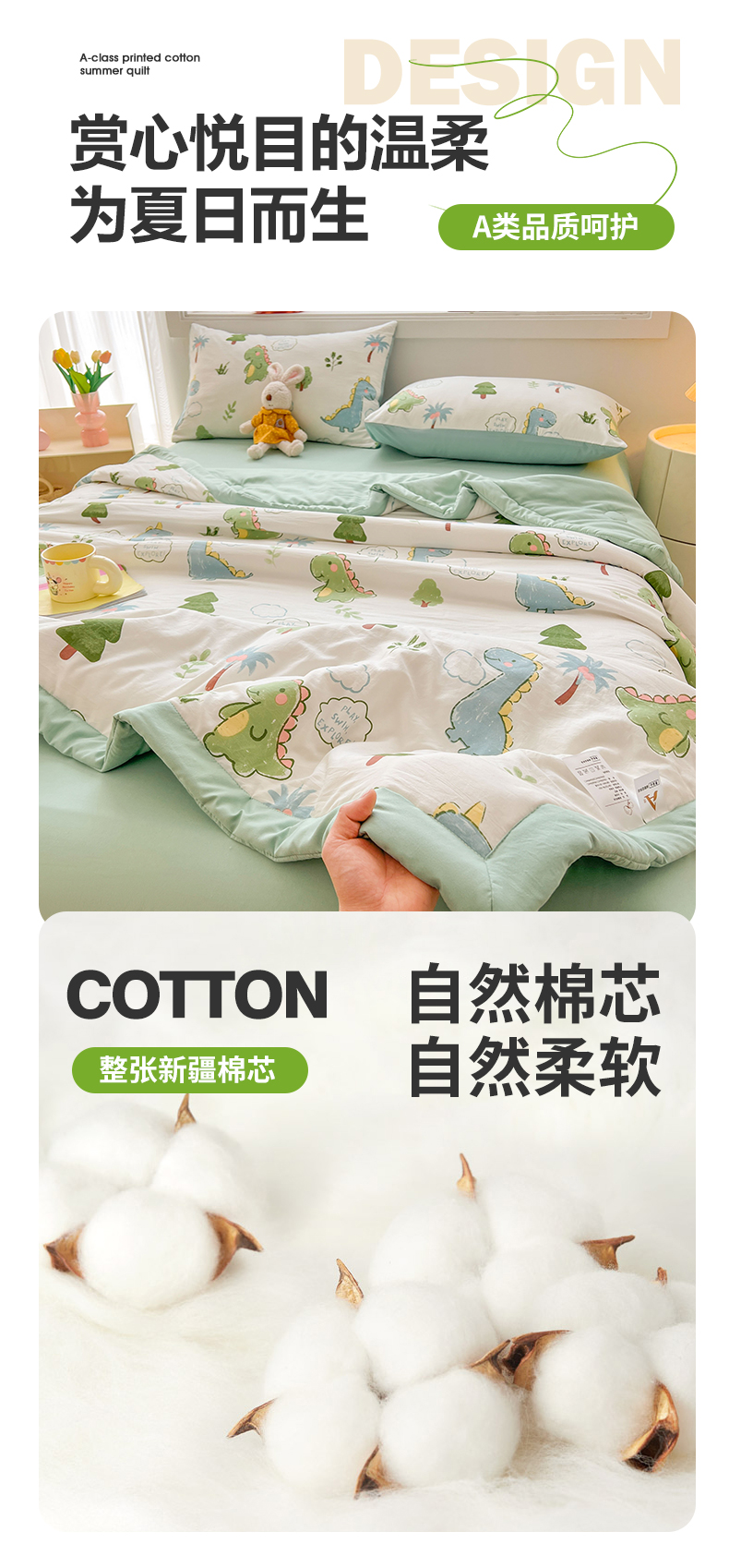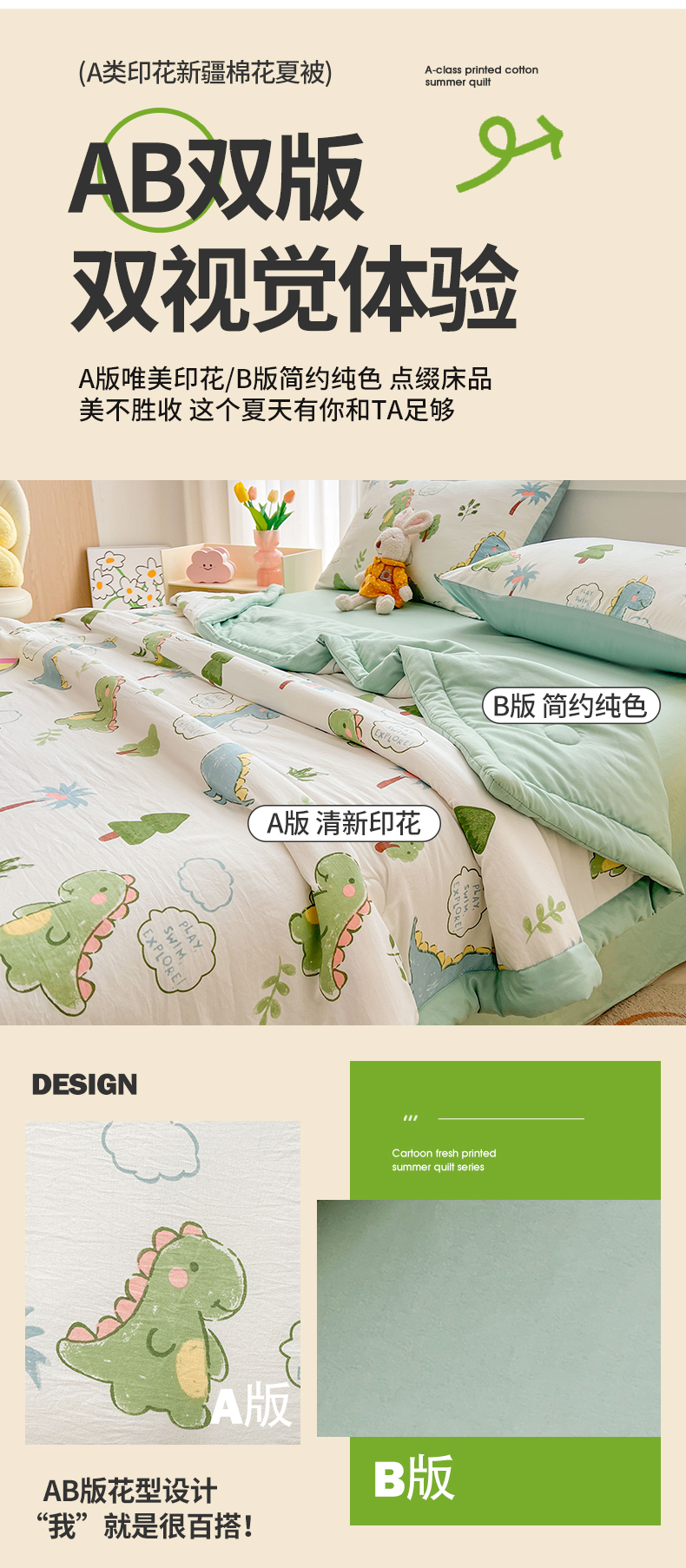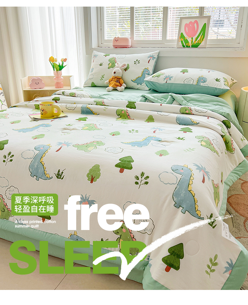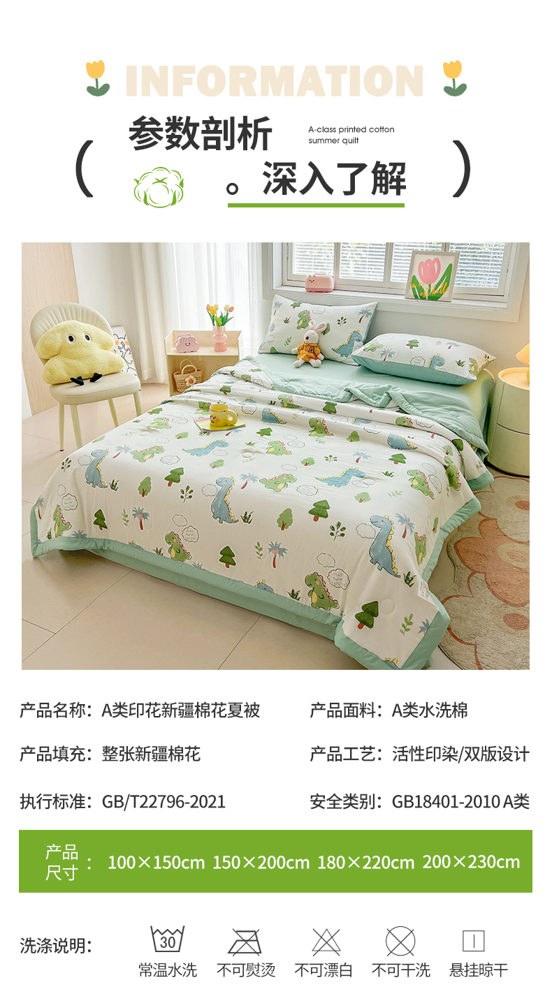 商品名称:晓时候 2025新款水洗棉夏被新疆棉花被印花夏凉被空调被薄被子 恐龙乐园