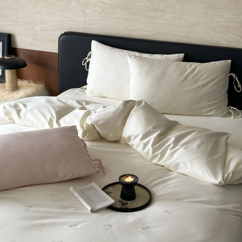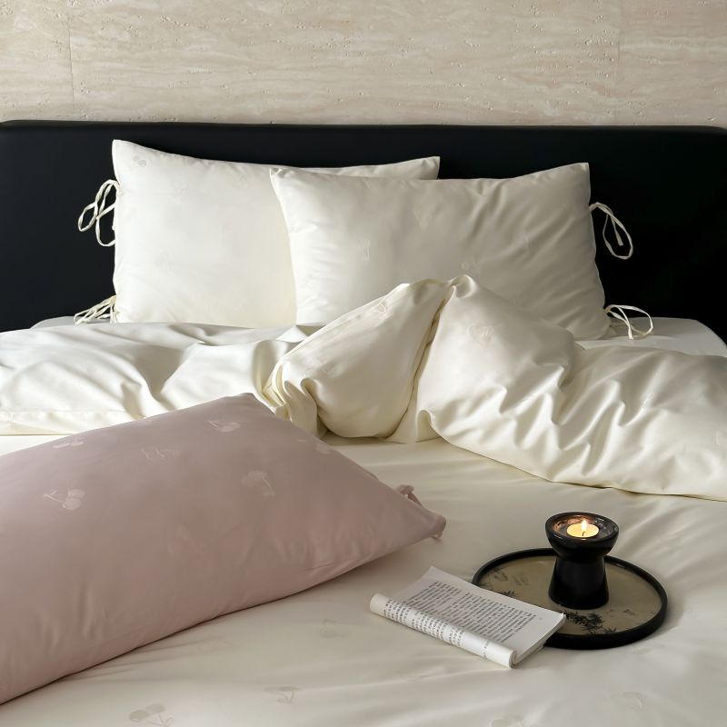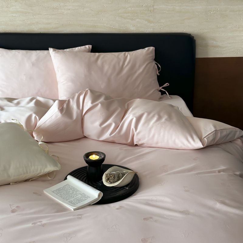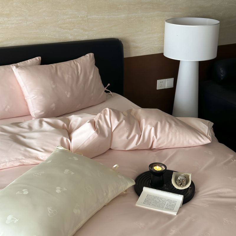 当前位置: 91家纺网 > 商品网购 > 床品套件 > 四件套 > 长绒棉四件套 > (总)鹿班家居 2025春夏款100S长绒棉精美提花系列-奶油樱桃-场景二 【标准会员-20元】