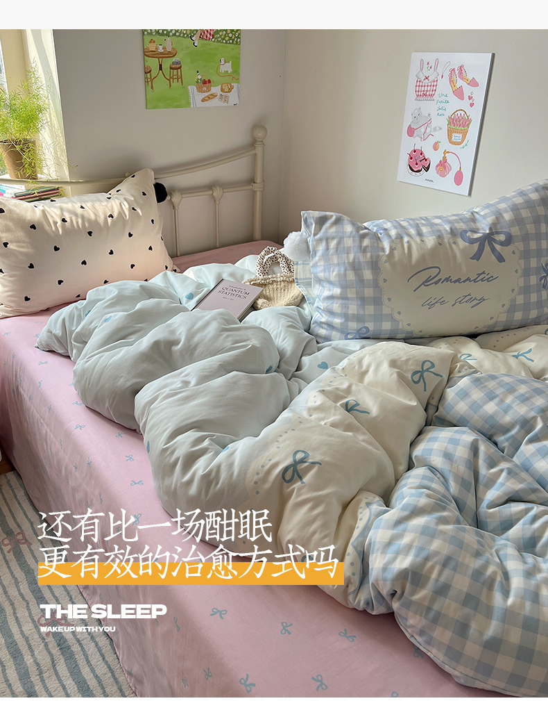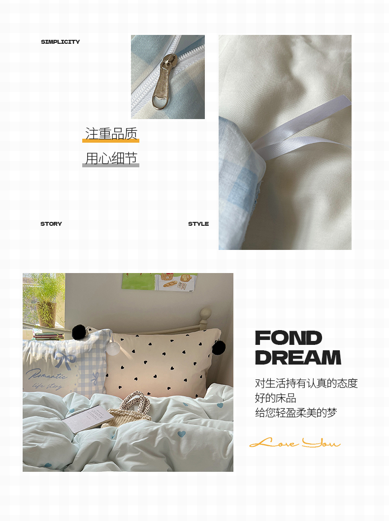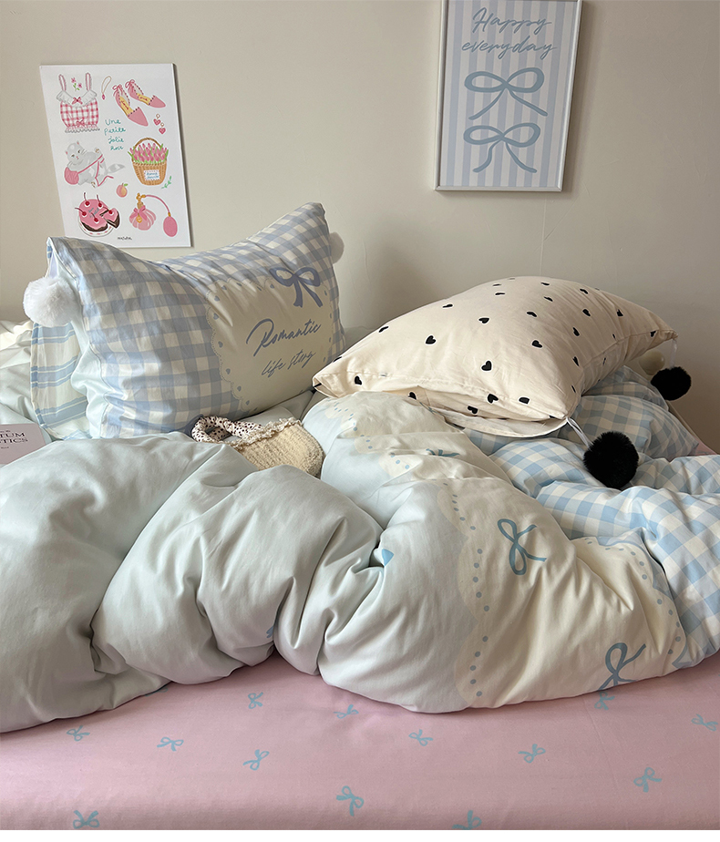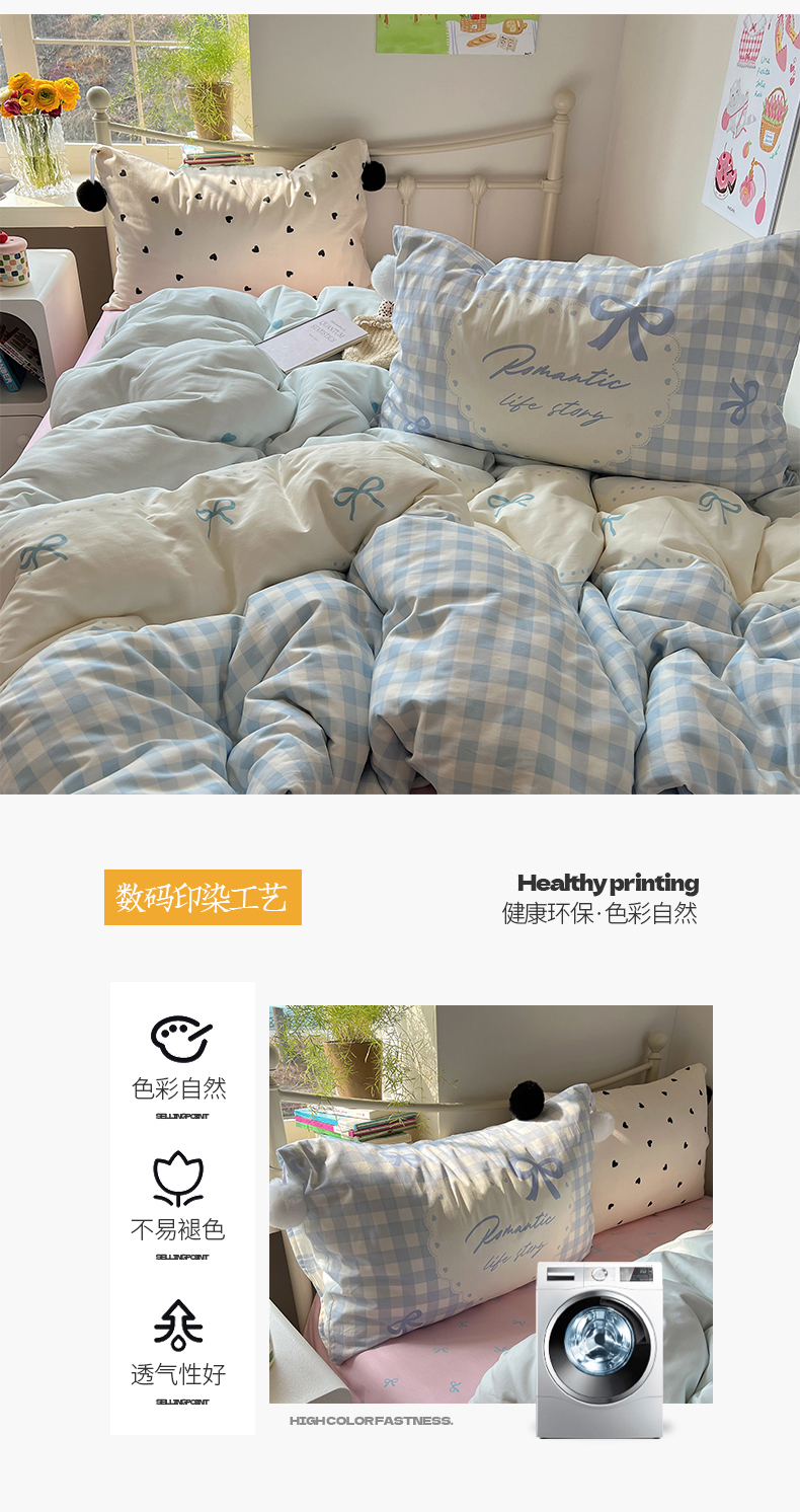 当前位置: 91家纺网 > 商品网购 > 床品套件 > 四件套 > 全棉普通四件套 > 2025新款A类水洗棉数码印花毛球枕套混搭心心少女纯棉水洗棉系列四件套 棉数码毛球-心心蓝蝴蝶结