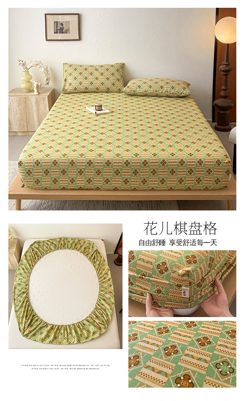 九亭家纺 2025新款A类全棉老粗布单床笠 花儿棋盘格
