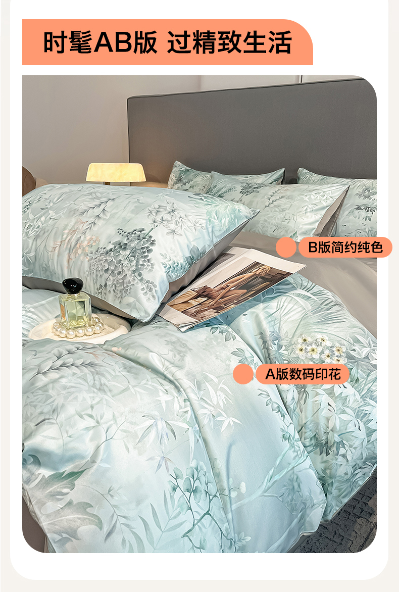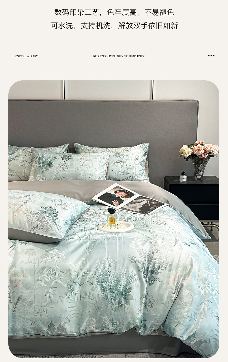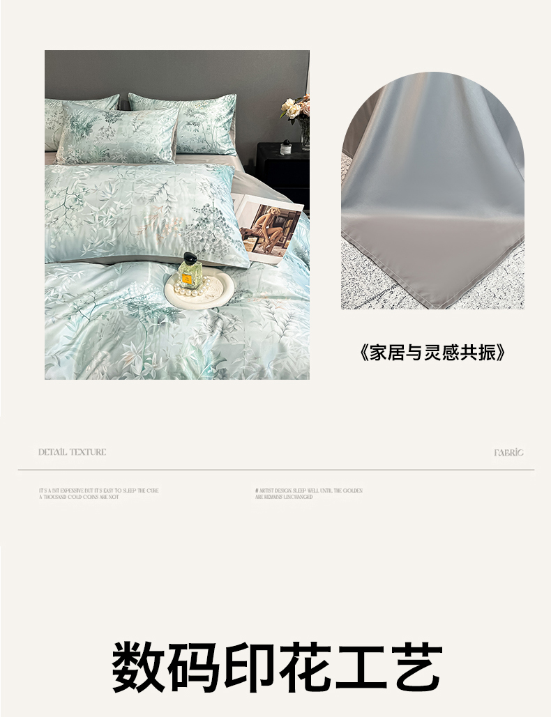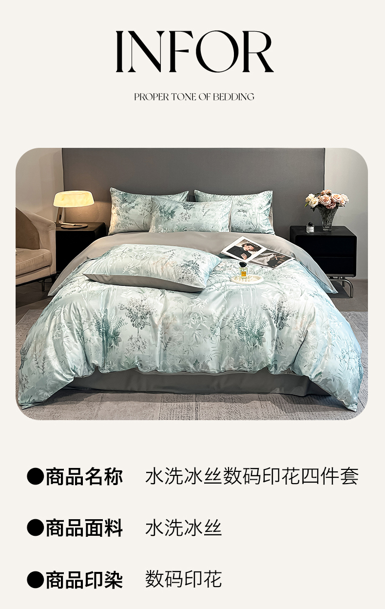 笙意家纺2025新款水洗冰丝数码印花暗盒款四件套 浮影