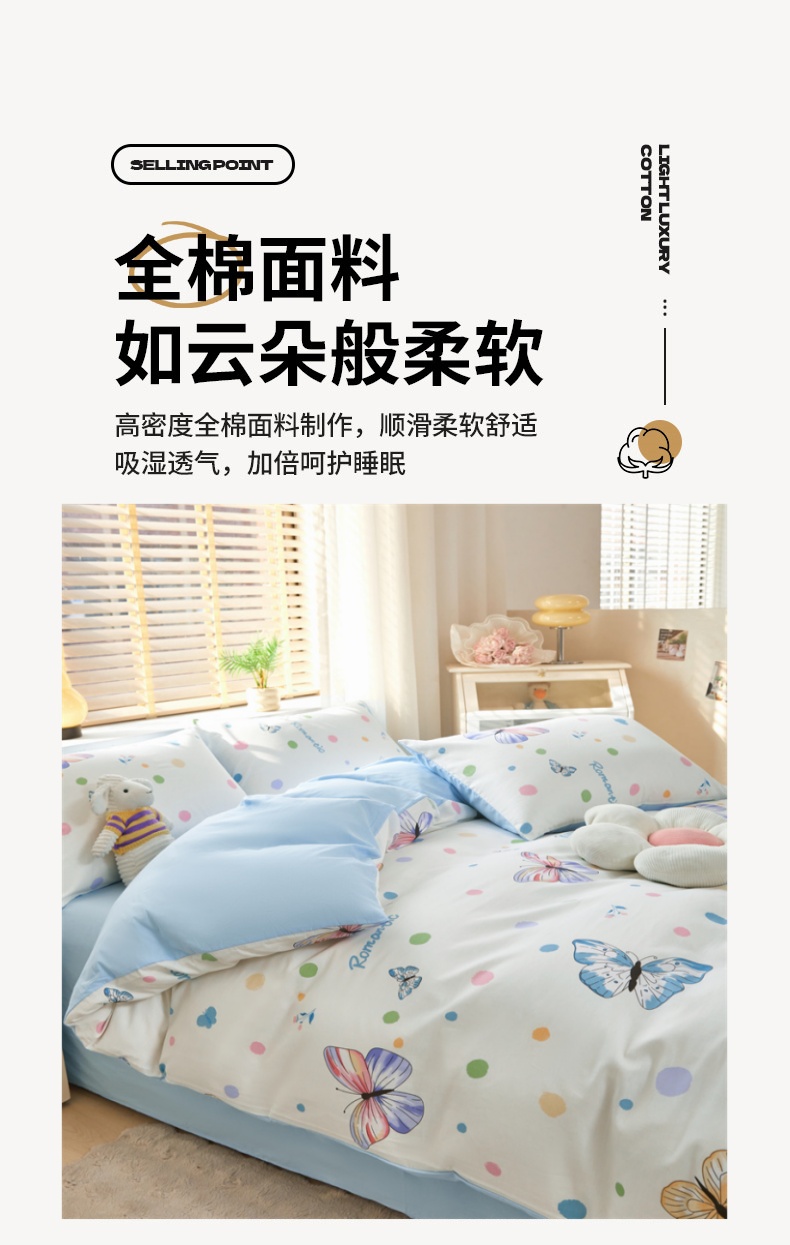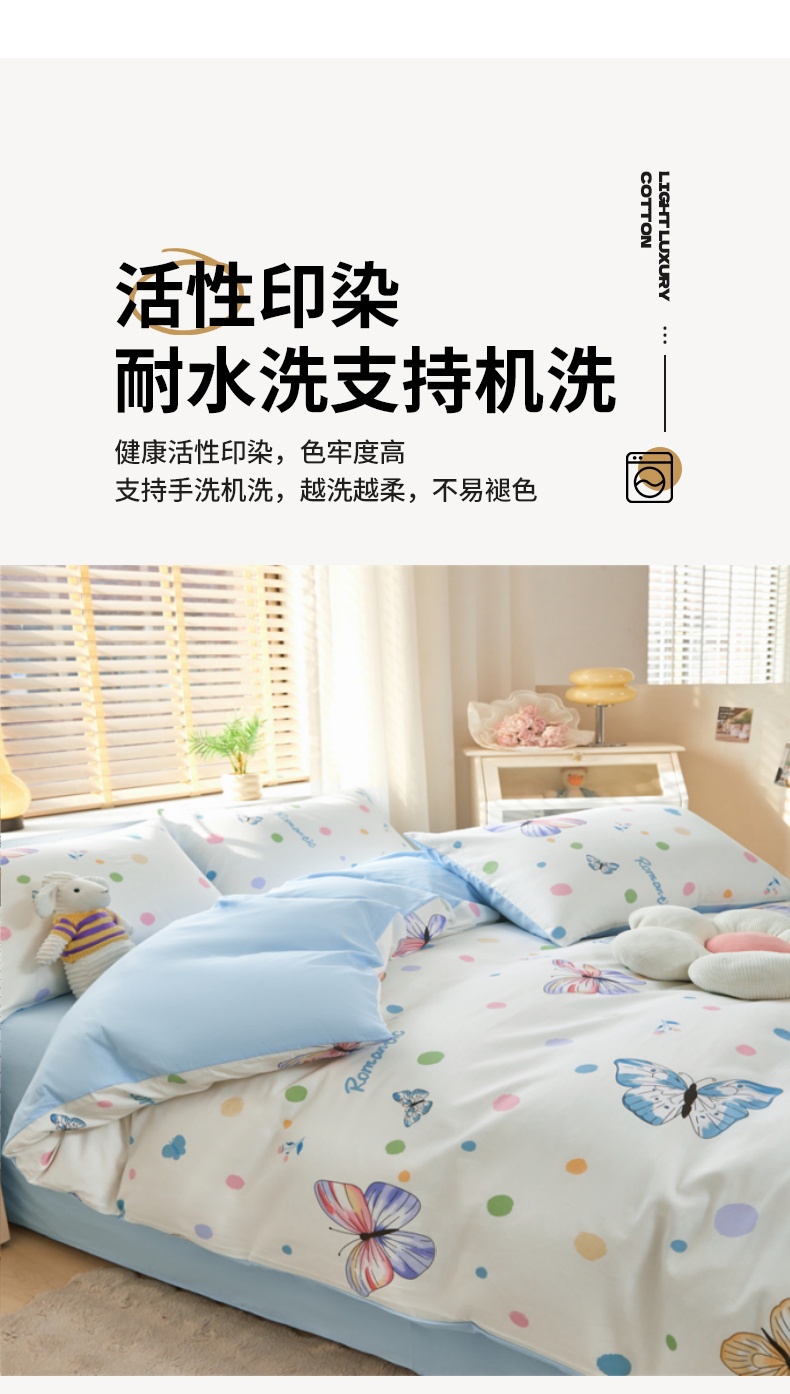 商品名称:梦舒羽2025新款全棉小清新印花加厚宿舍床单床裙款四件套 琉璃如梦-全棉