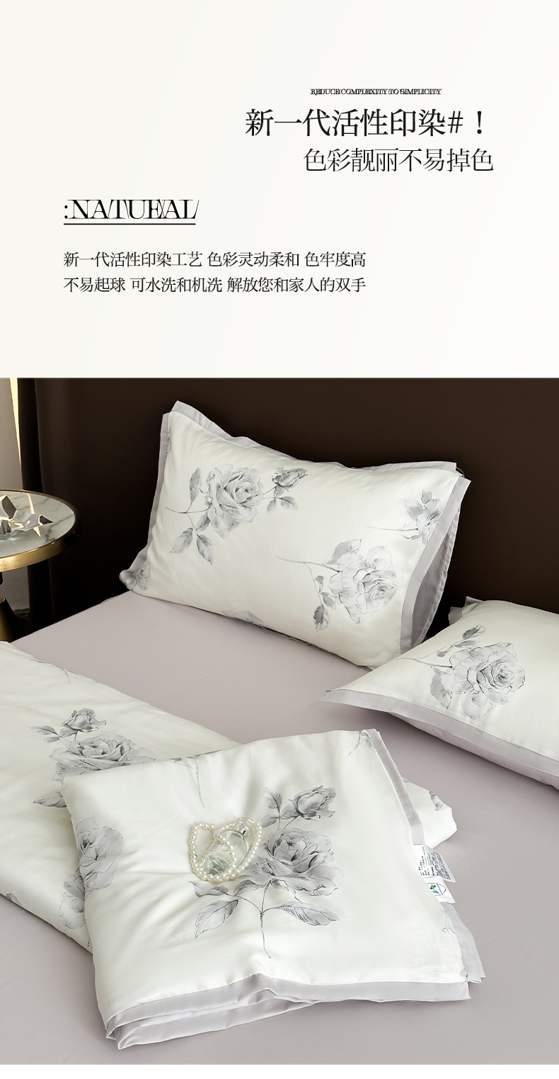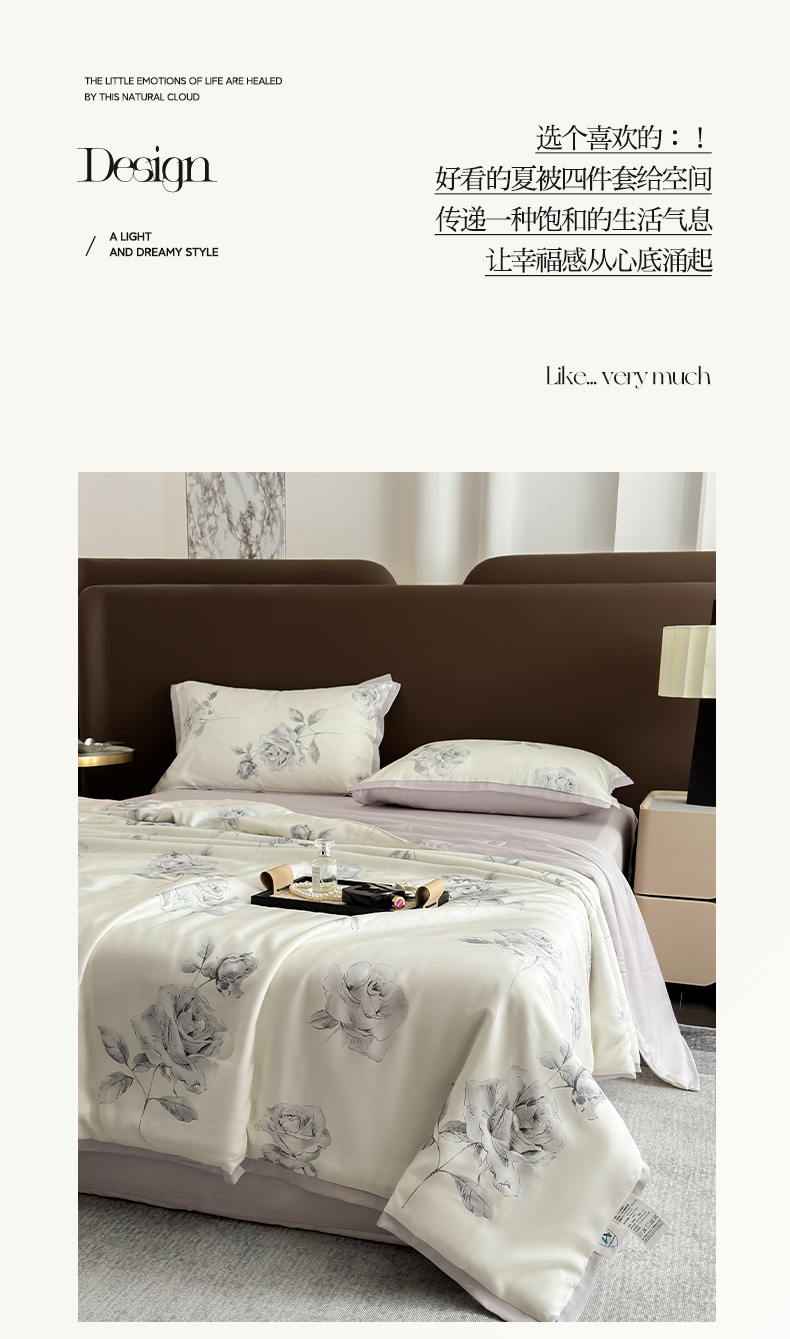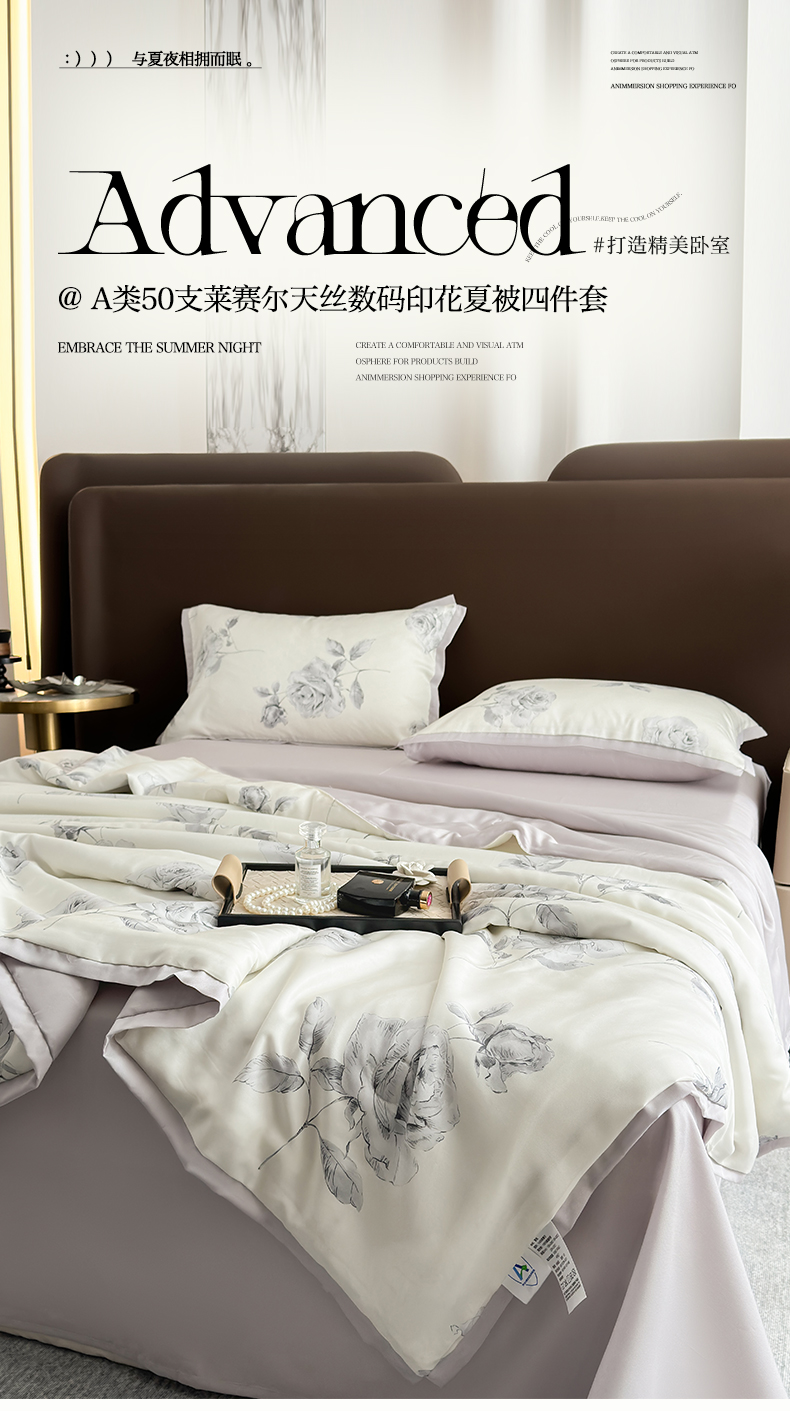 当前位置: 91家纺网 > 商品网购 > 床品套件 > 四件套 > 夏被四件套 > 莱登卡奴 25新款A类50支100%莱赛尔天丝数码印花夏被四件套 瑰丽山灰
