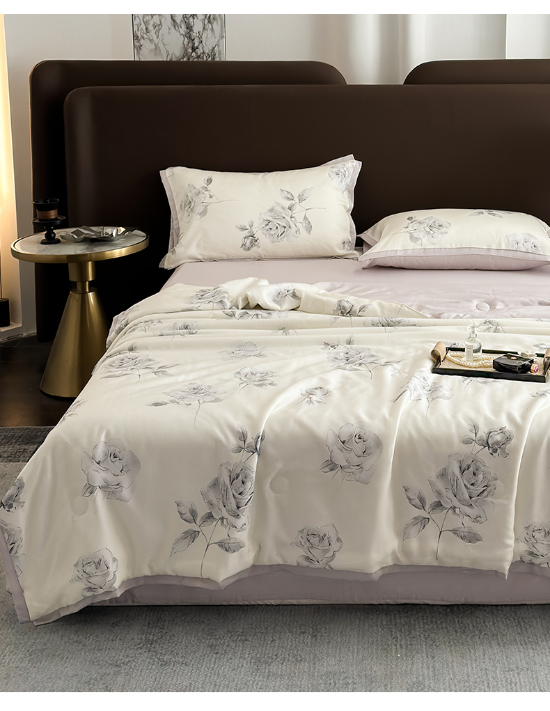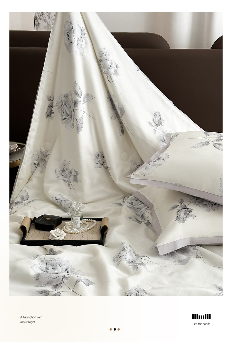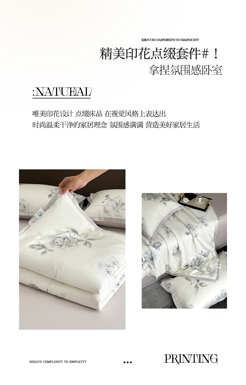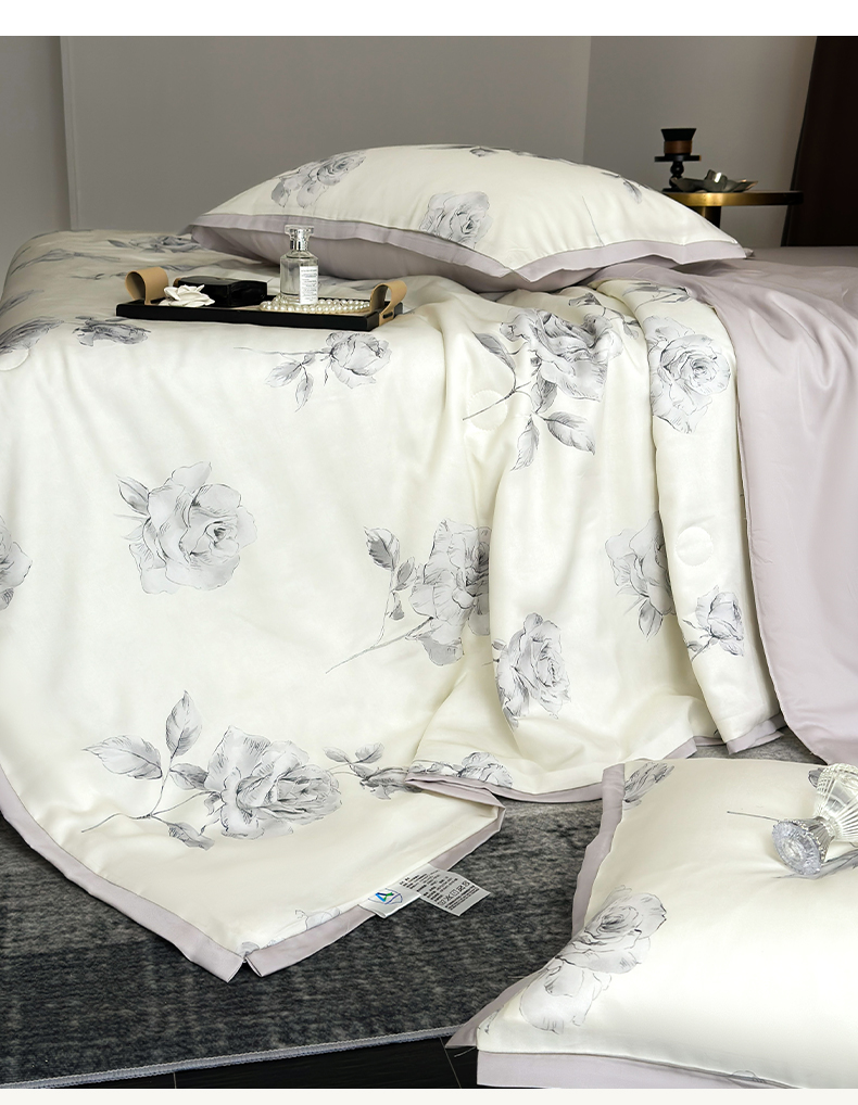 当前位置: 91家纺网 > 商品网购 > 床品套件 > 四件套 > 夏被四件套 > 莱登卡奴 25新款A类50支100%莱赛尔天丝数码印花夏被四件套 瑰丽山灰
