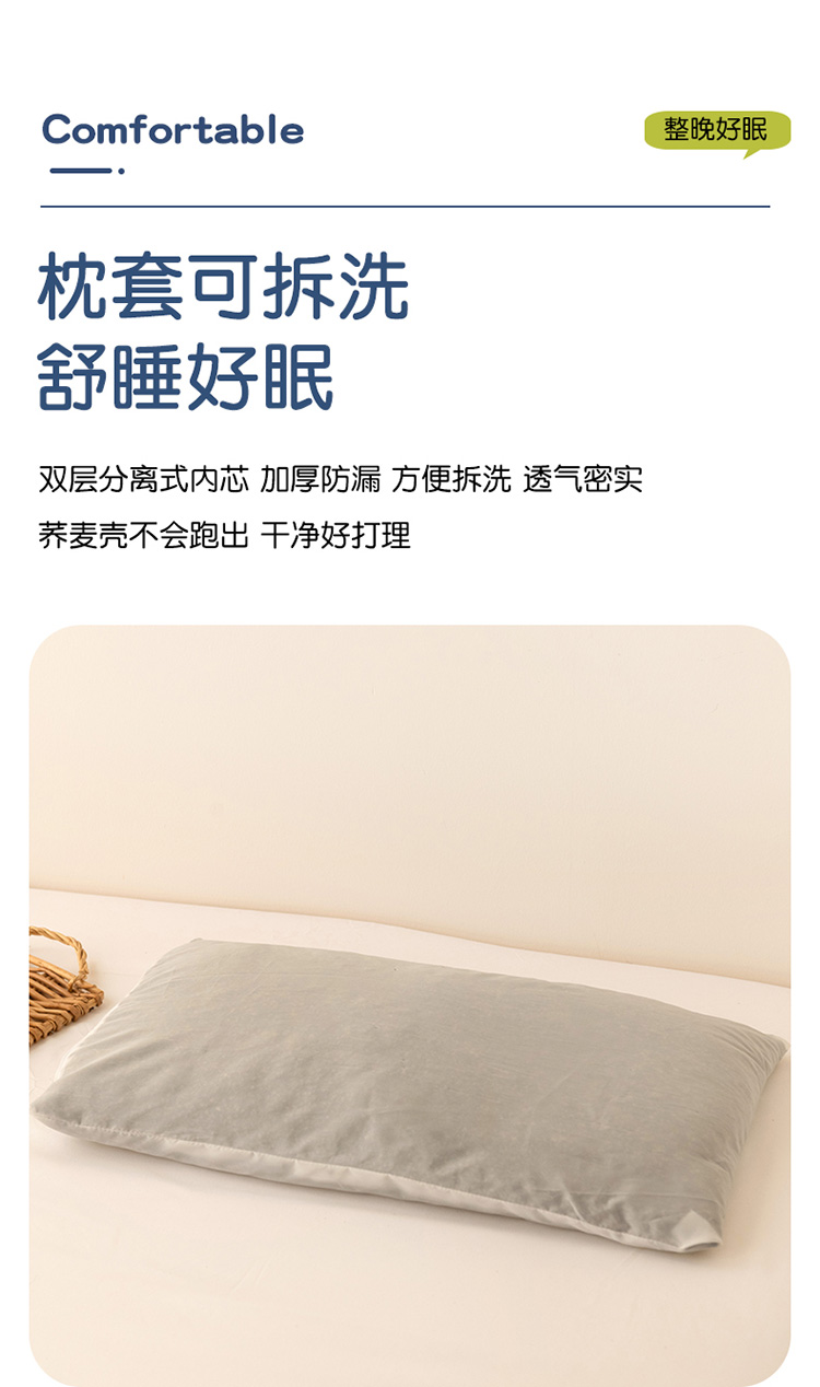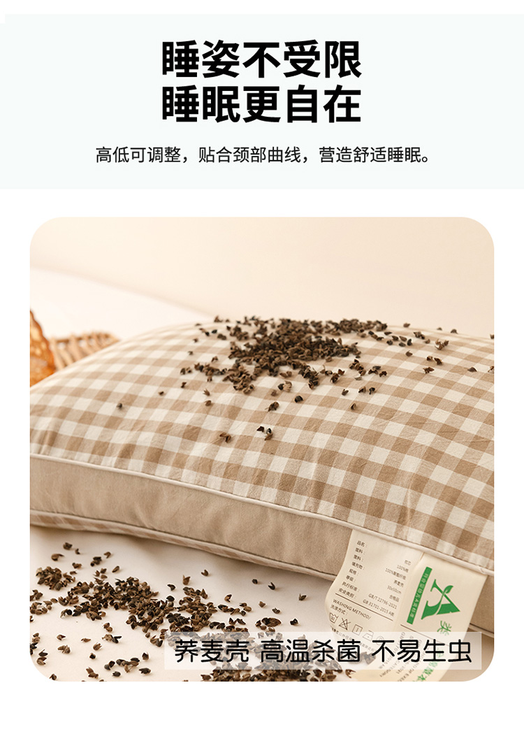 商品名称:(总)2025新款水洗棉荞麦枕 全棉荞麦枕