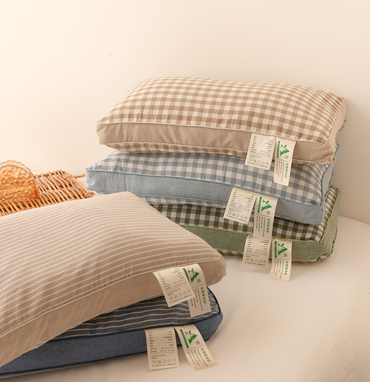 (总)花瓣语家纺 2025新款全棉水洗棉荞麦枕头枕芯,中咖条纹30*50cm,中咖小格30*50cm,蓝小格30*50cm,绿小格30*50cm,牛仔蓝30*50cm