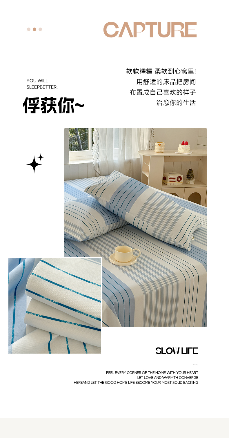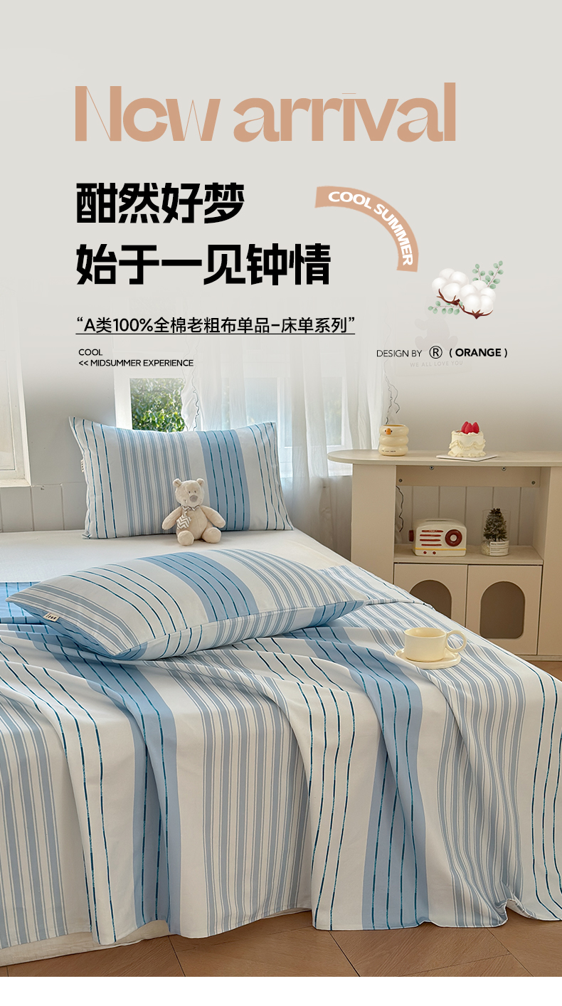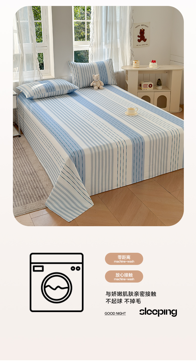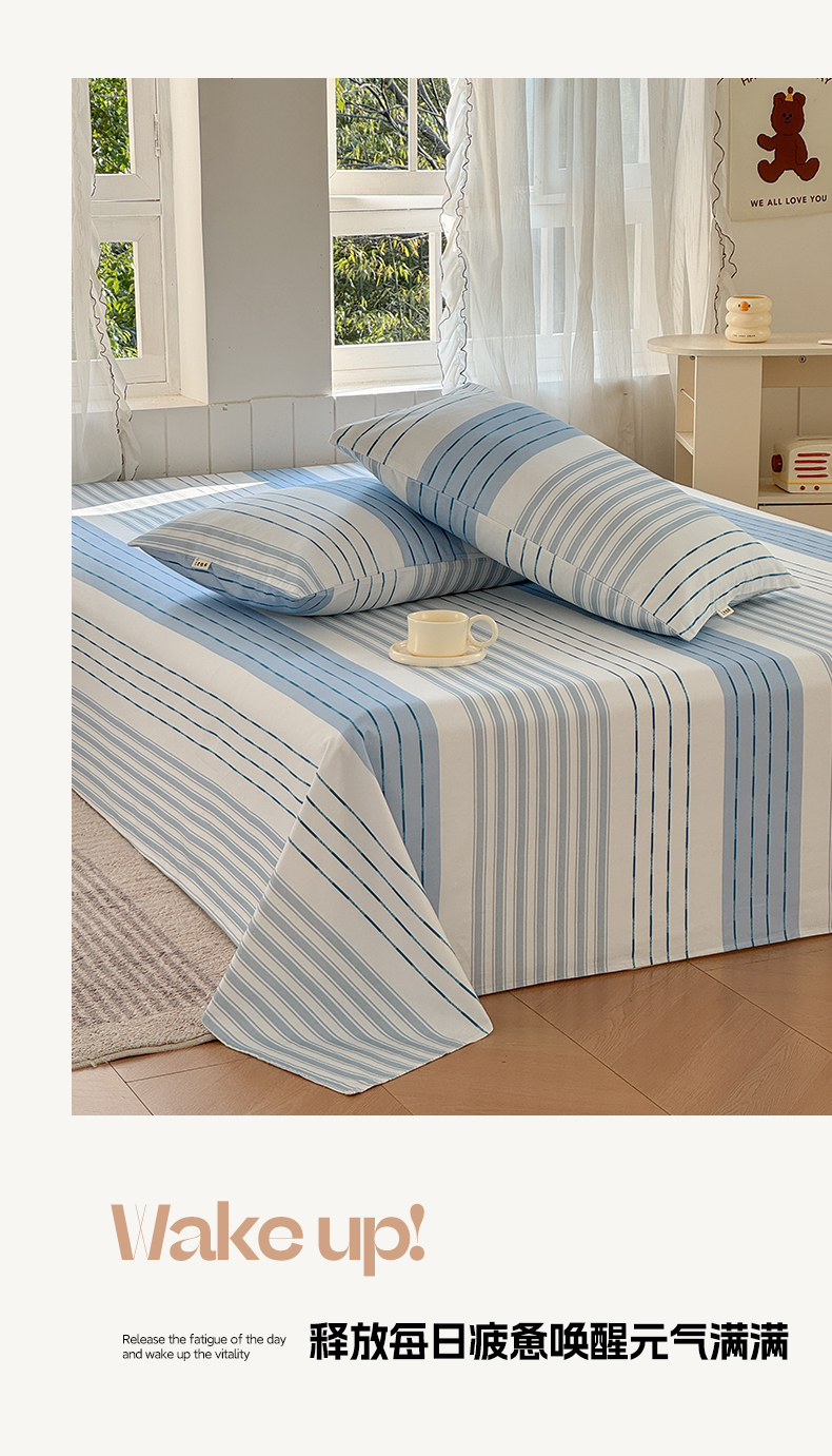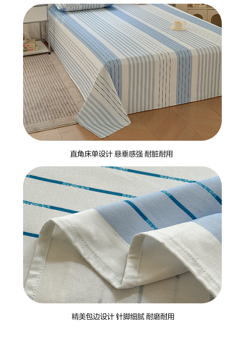 莱登卡奴 新款A类100%全棉老粗布单品系列-床单 蓝宁小调