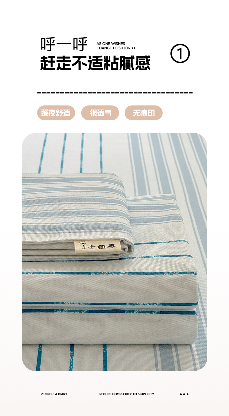• 91家纺网 家纺一手货源 找家纺 莱登卡奴 新款A类100%全棉老粗布单品系列-床单 蓝宁小调