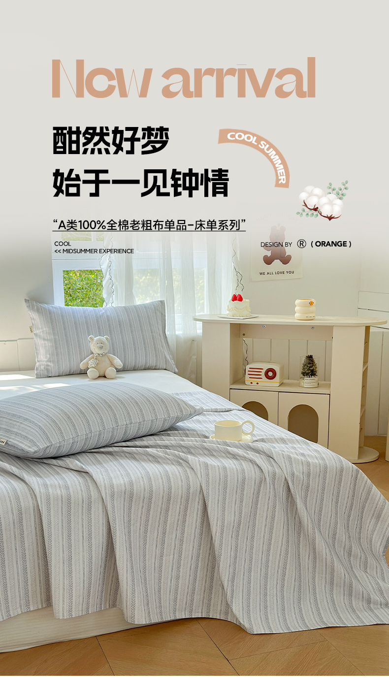 莱登卡奴 新款A类100%全棉老粗布单品系列-床单 忘川深海