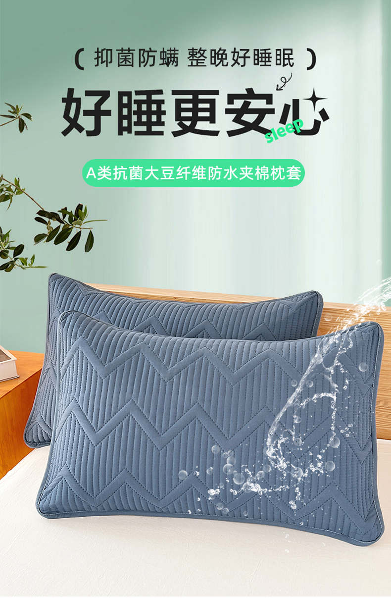 (总)曼陀罗 2025新款A类抗菌大豆纤维防水夹棉枕套 乳胶枕套,本白,宾蓝,草绿,豆绿,粉玉,卡其,深灰,雾蓝