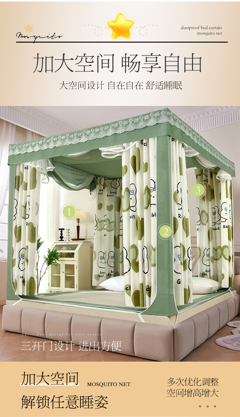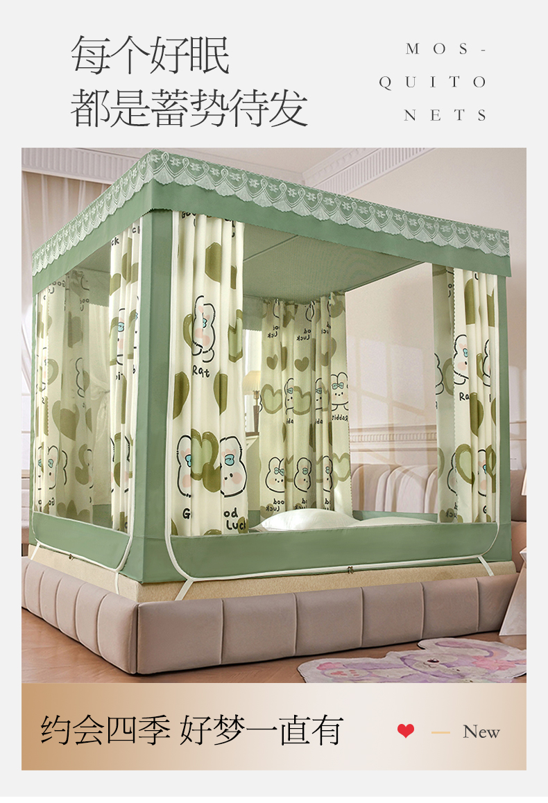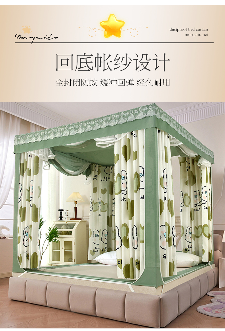 (总)显高蚊帐 2025春夏新款U门花边款坐床遮光防尘床帘式蚊帐,lucky狗狗-花边款,草莓熊-花边款,春暖花开-花边款,花开满园-花边款,开心兔-花边款,库洛米-花边款,萌萌兔-花边款,苹果兔-花边款,森林乐园-花边款,柿柿如意-花边款,甜心小狗-花边款,兔公主-花边款,兔兔花园-花边款,心想柿橙-花边款,优雅紫-花边款,郁金香-花边款,竹林熊猫-花边款,抹茶绿-花边款,时尚蓝-花边款,温馨黄-花边款,樱花粉-花边款,优雅紫-花边款