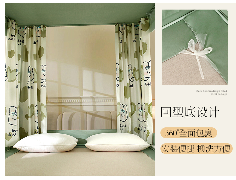商品名称:显高蚊帐 2025新款U型坐床遮光防尘床帘式蚊帐 抹茶绿