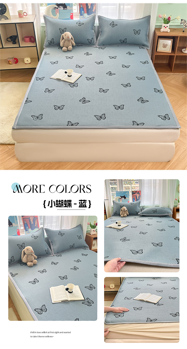 莱米家纺 2025新款冰感凉豆豆凉席床笠款 小蝴蝶—蓝