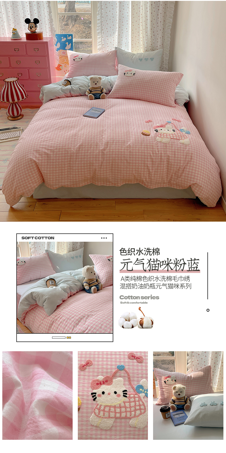 (总)桃子家居 2026新款ins小清新费尔岛猫咪全棉纯棉印花四件套,棉-费尔岛狗狗,棉-蓝豹纹猫,棉-蓝格线条狗,棉-美好熊兔,棉-喵吃鱼粉,棉-喵吃鱼蓝,棉-少女黑皮猫,棉-甜粉樱桃猫,棉-甜甜日记,棉-星星猫咪,棉-星月小马,棉-紫格梦幻狗