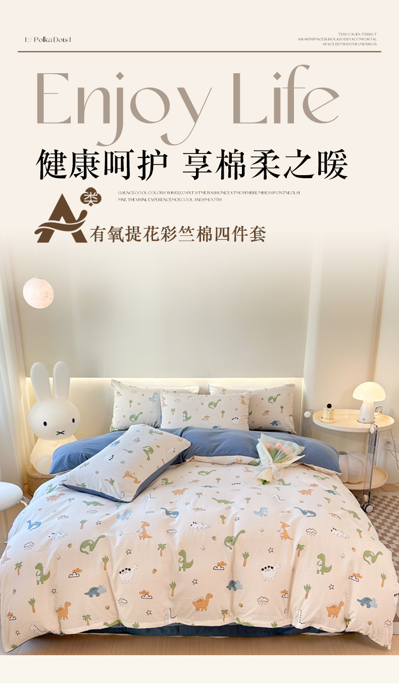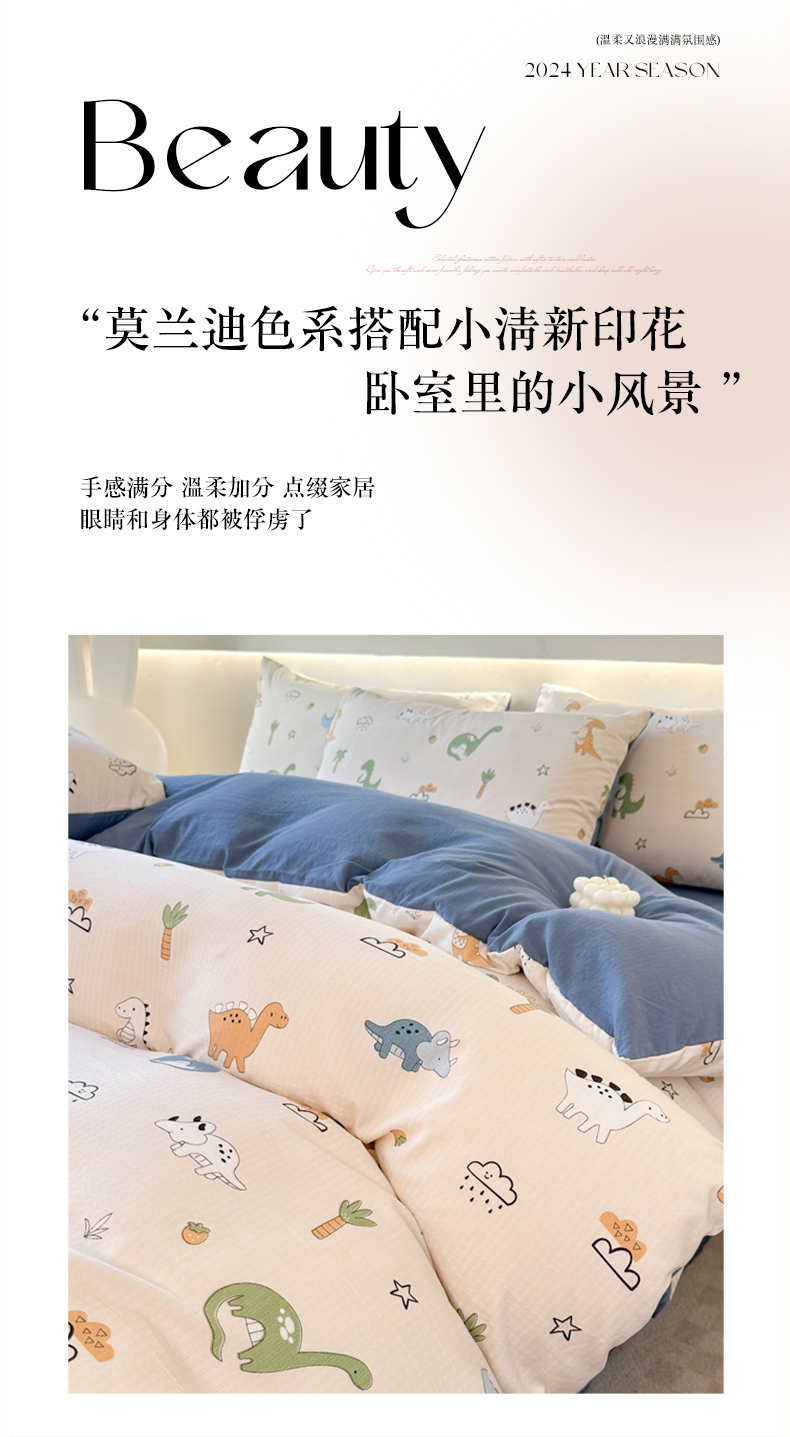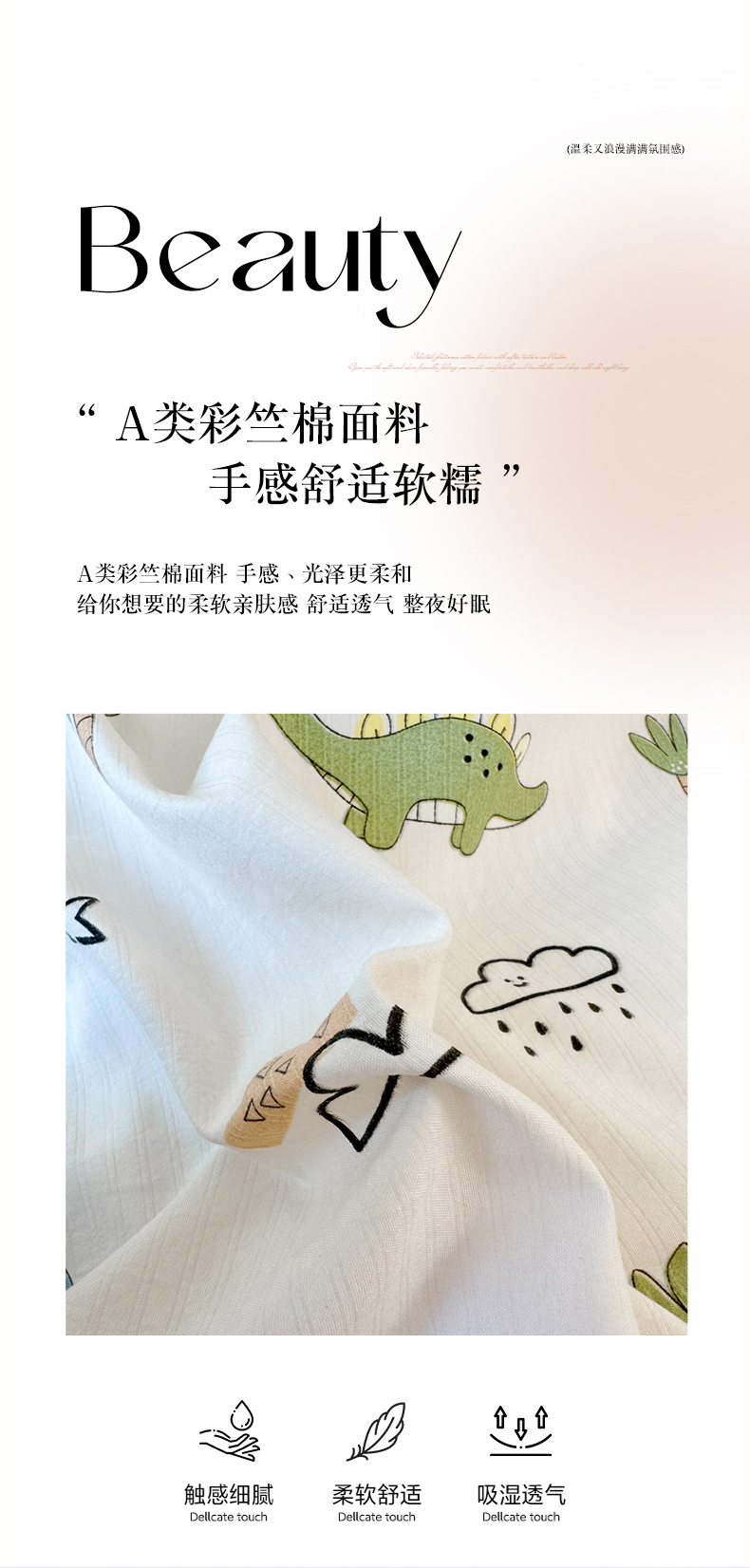 当前位置: 91家纺网 > 商品网购 > 床品套件 > 四件套 > 其它四件套 > 晚爱家纺(原晚安家居) 2025新款A类双层纱有氧提花彩竺棉小竺棉四件套小恐龙