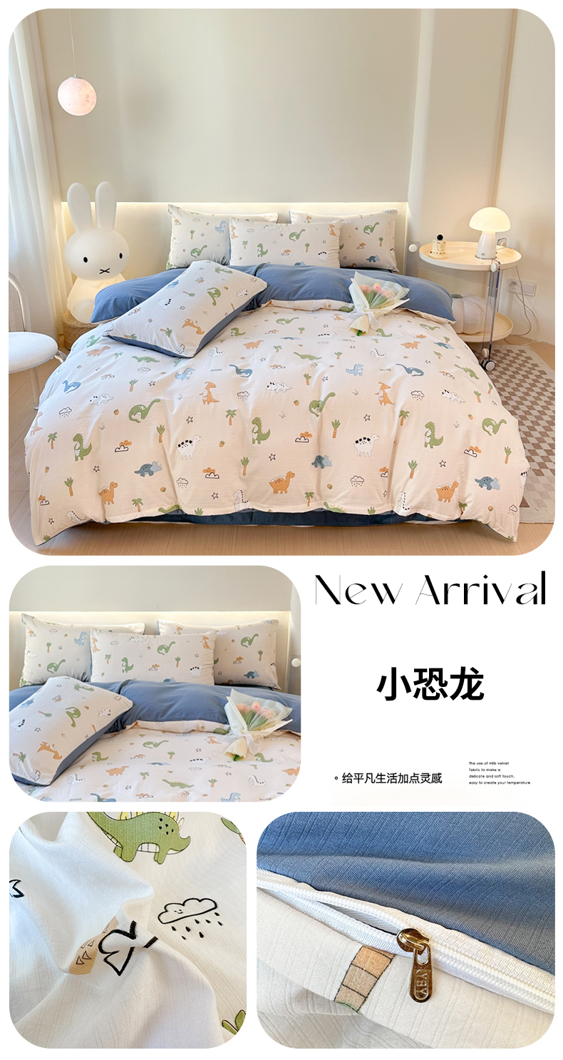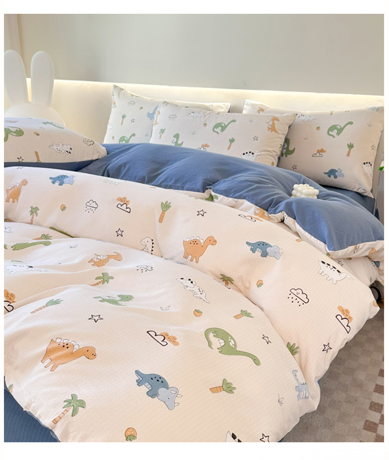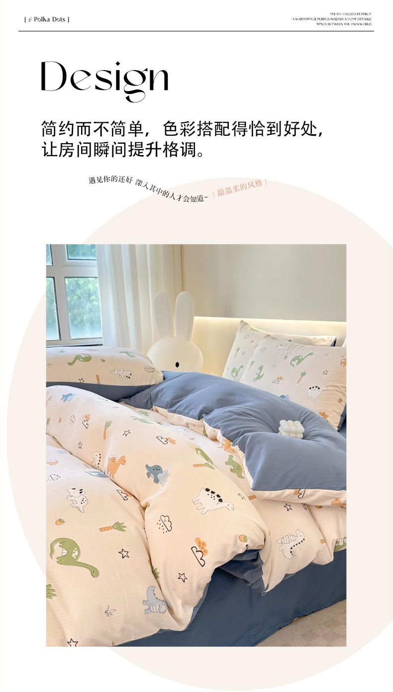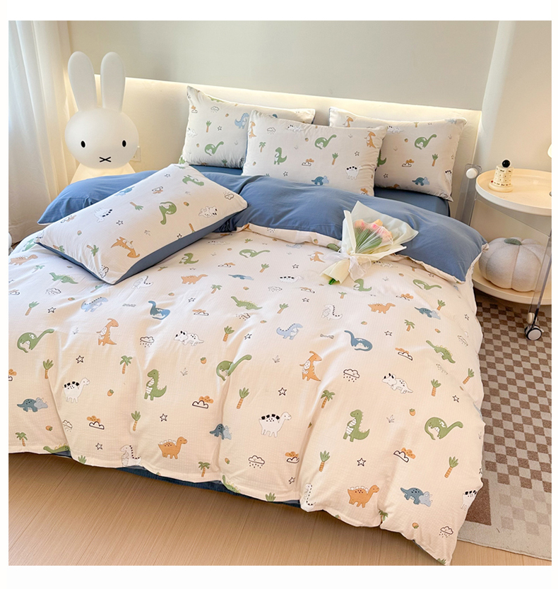 当前位置: 91家纺网 > 商品网购 > 床品套件 > 四件套 > 其它四件套 > 晚爱家纺(原晚安家居) 2025新款A类双层纱有氧提花彩竺棉小竺棉四件套小恐龙