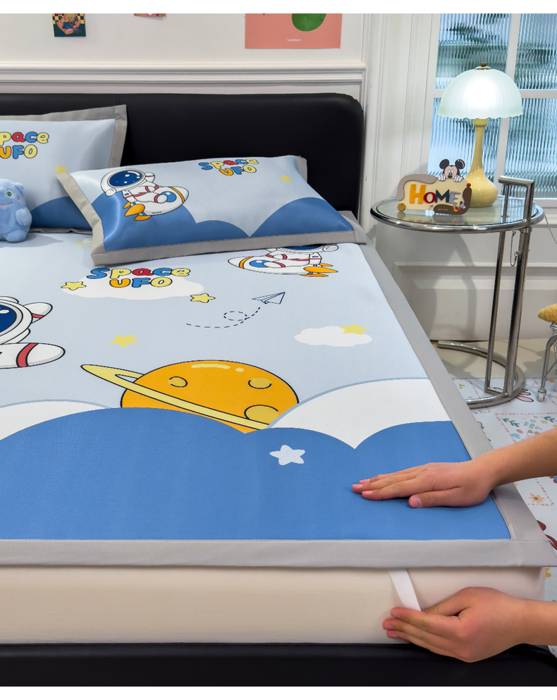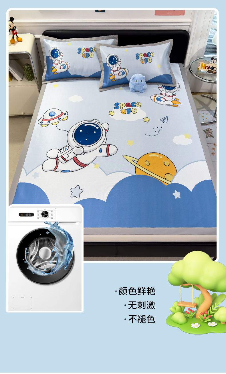 (总)丝羽坊 2025新款大版印花冰丝凉席冰丝席碳光冰丝凉席-平铺款