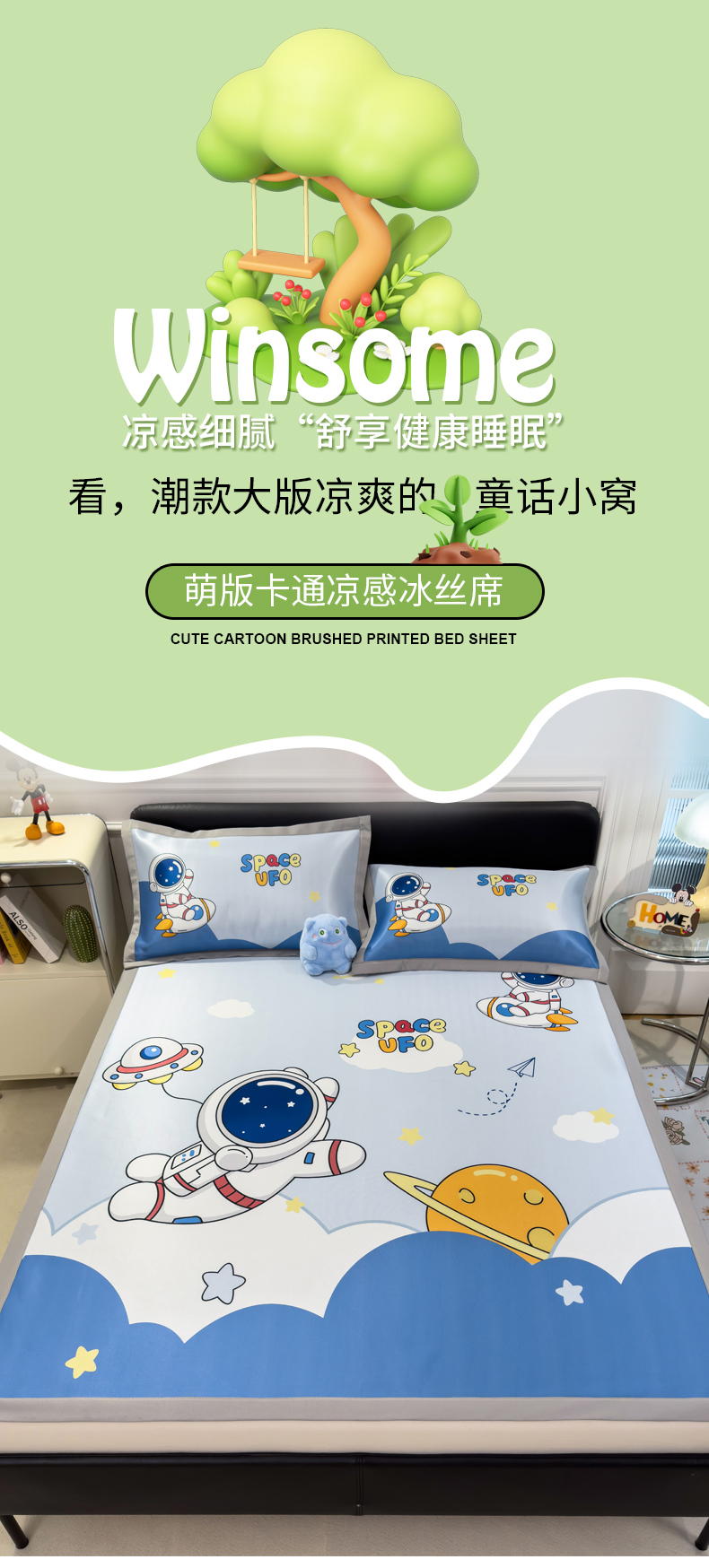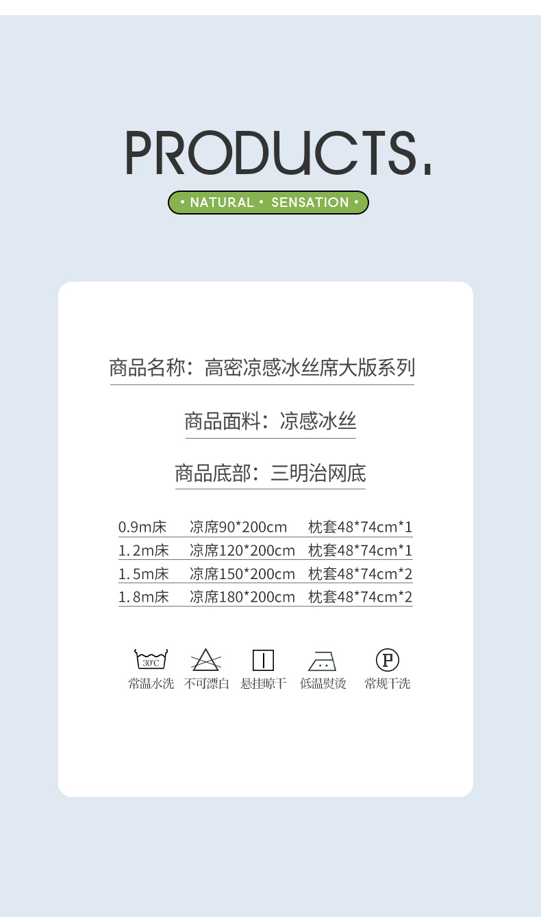 商品名称:(总)丝羽坊 2025新款大版印花冰丝凉席冰丝席碳光冰丝凉席-平铺款