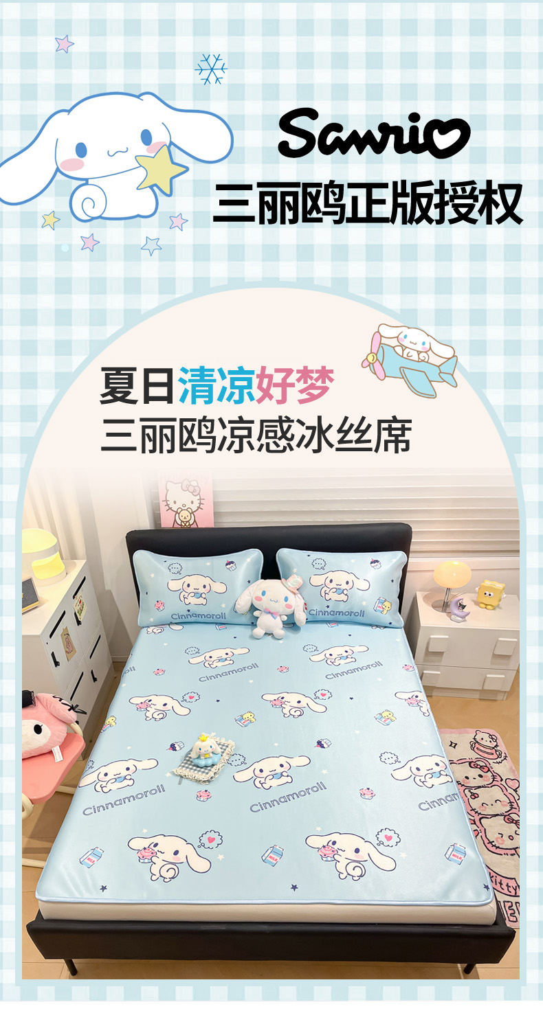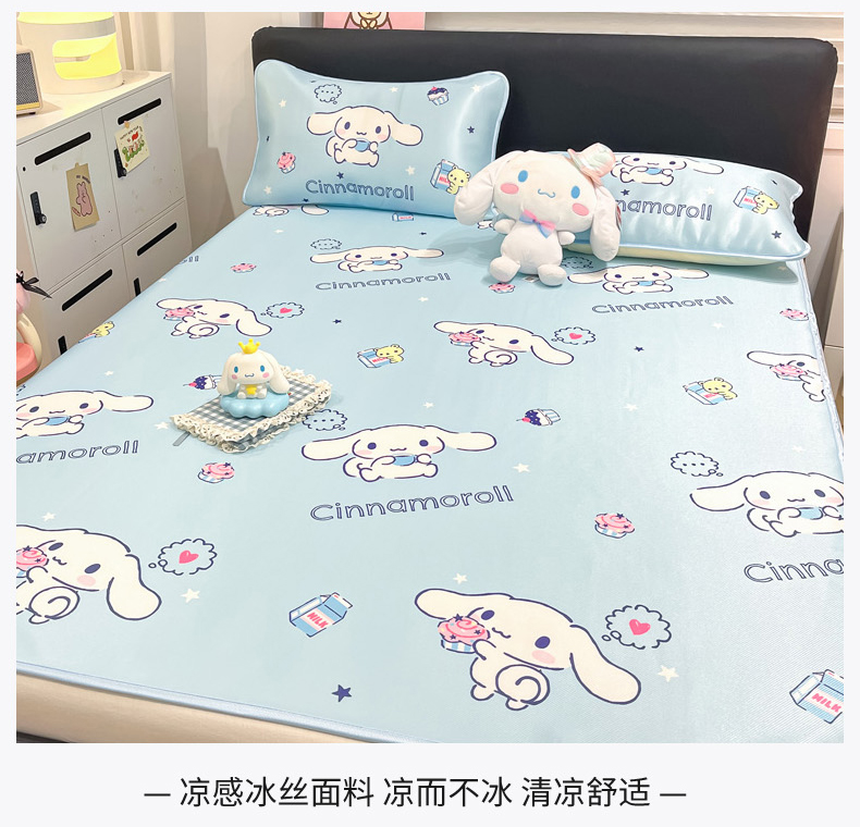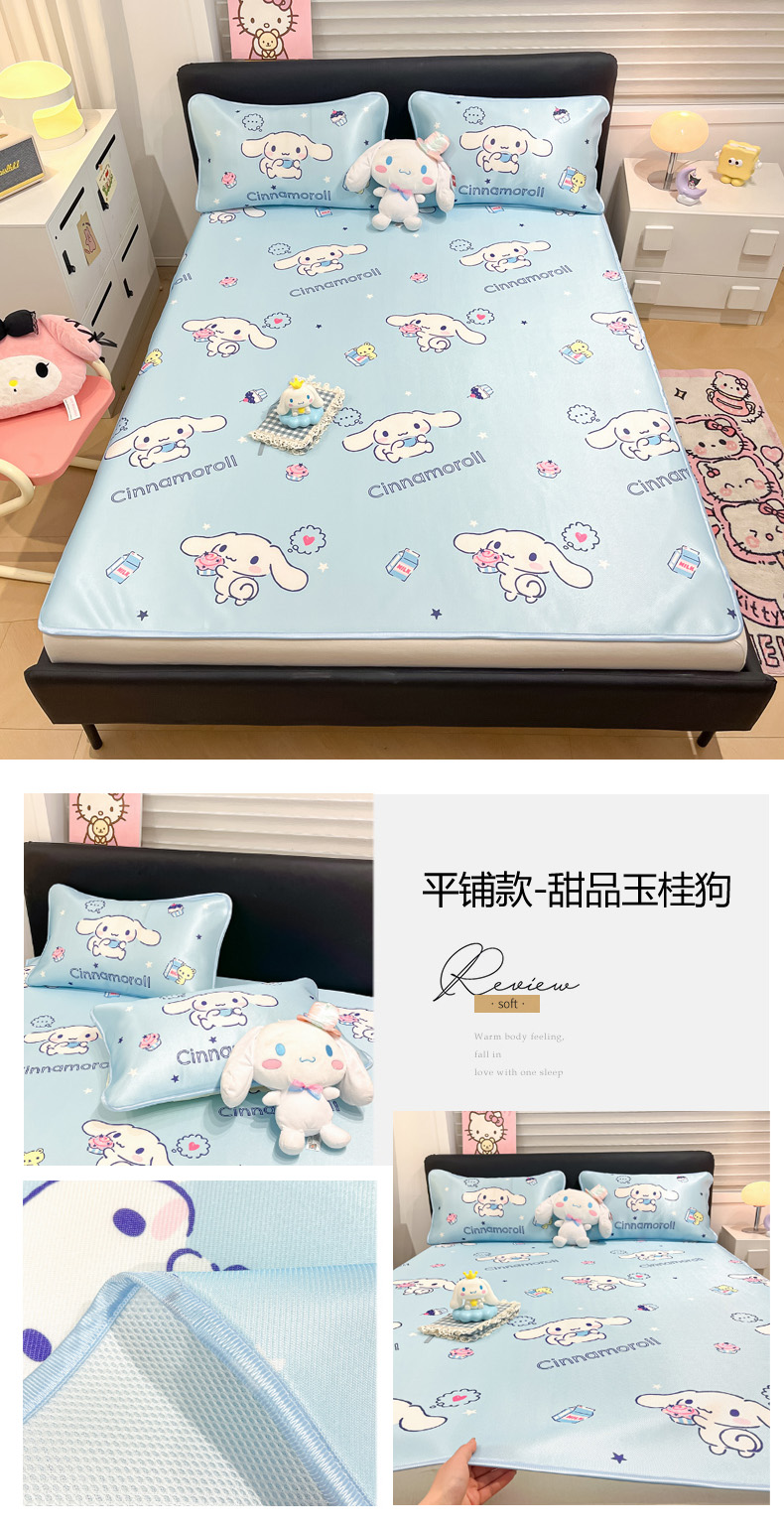 商品名称:暮思家居 2025新款三丽鸥正版授权数码印花A类可机洗1200D冰丝凉席三件套平铺款系列 平铺款-甜品玉桂狗