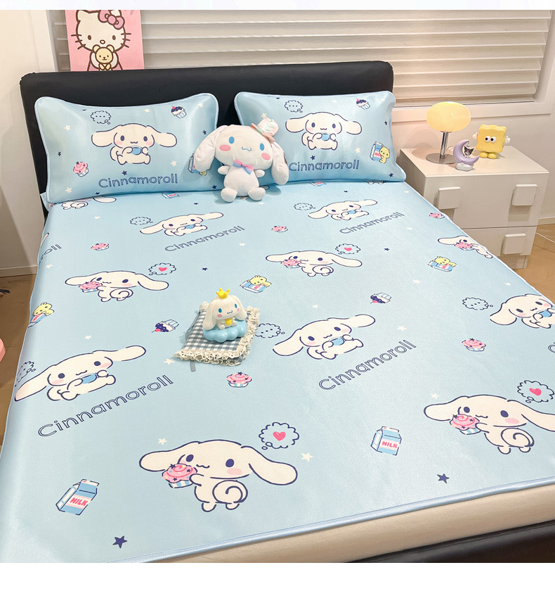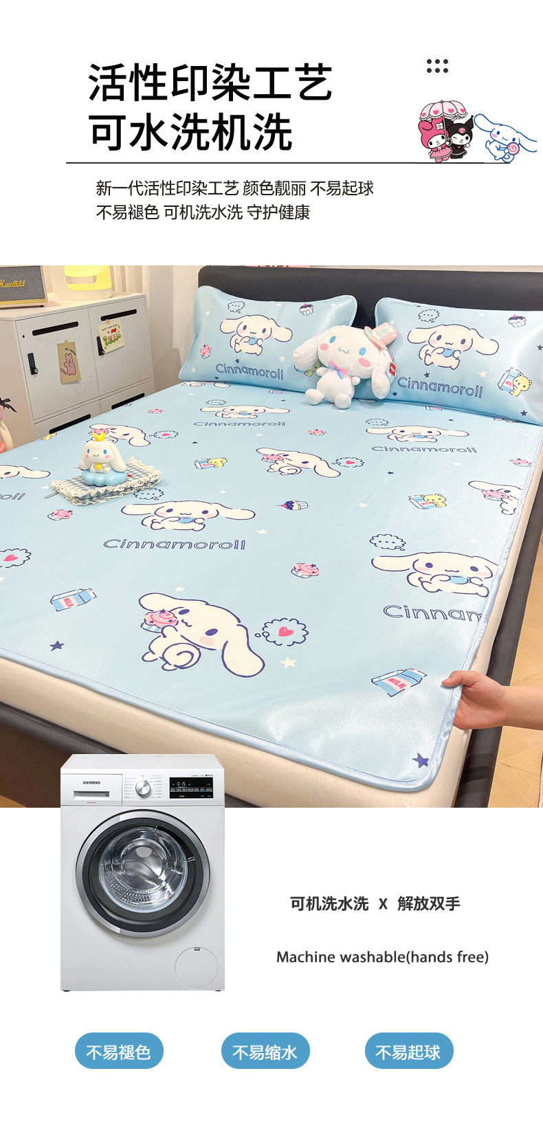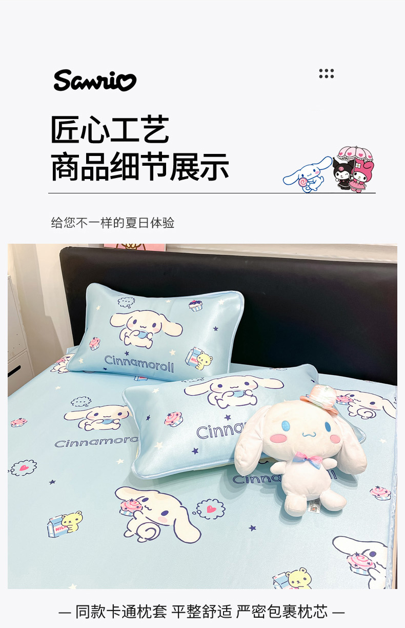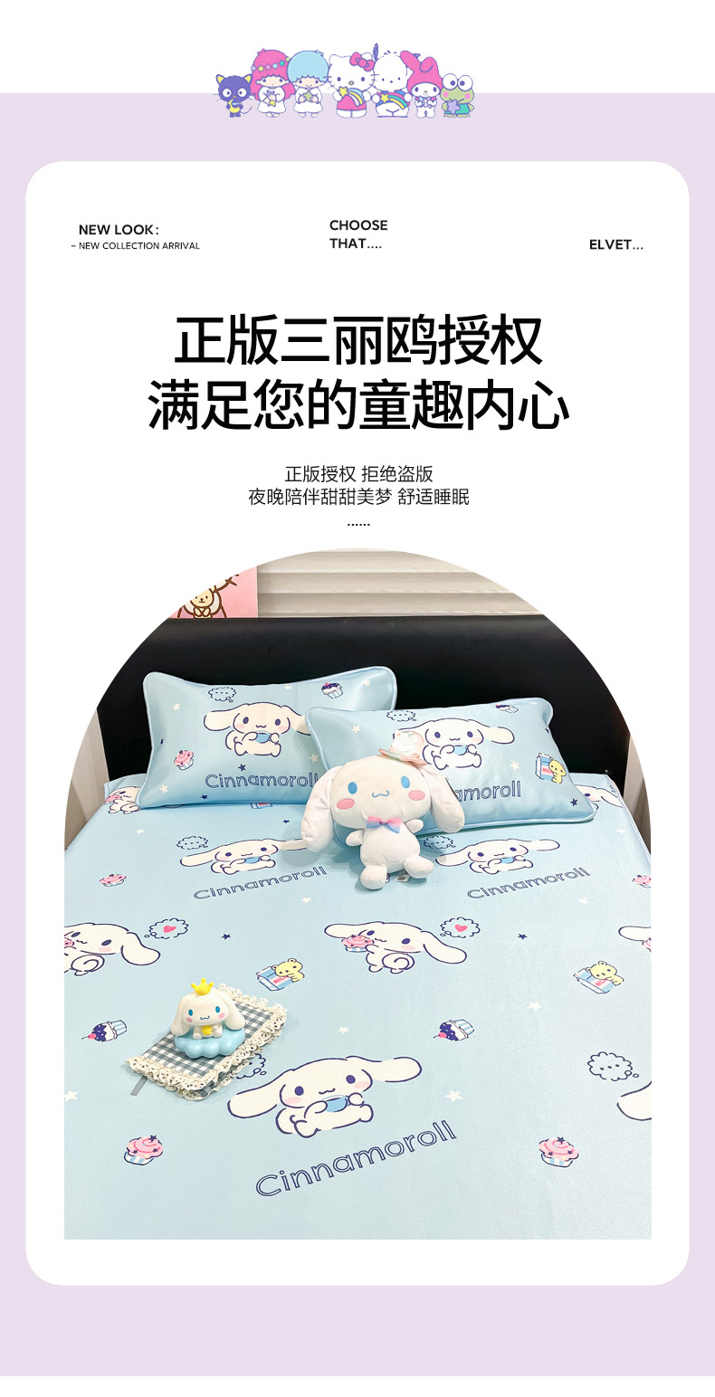 商品名称:暮思家居 2025新款三丽鸥正版授权数码印花A类可机洗1200D冰丝凉席三件套平铺款系列 平铺款-甜品玉桂狗