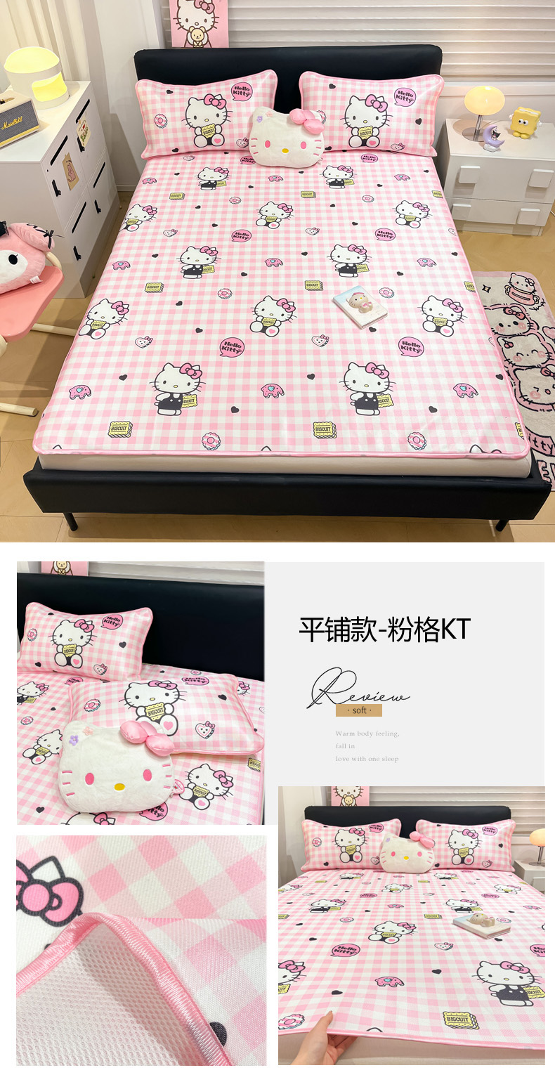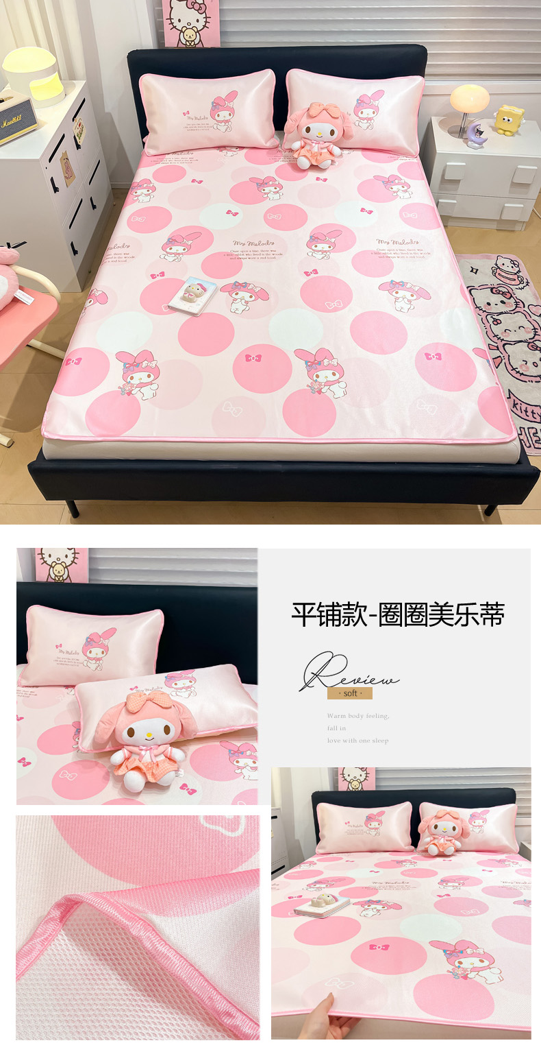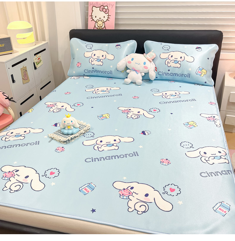 暮思家居 2025新款三丽鸥正版授权数码印花A类可机洗1200D冰丝凉席三件套平铺款系列 平铺款-甜品玉桂狗