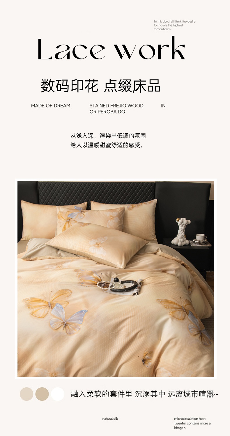 当前位置: 91家纺网 > 商品网购 > 床品套件 > 四件套 > 其它四件套 > 氧家 2025新款60s贡缎长绒棉数码印花四件套(礼盒装) 蝶恋