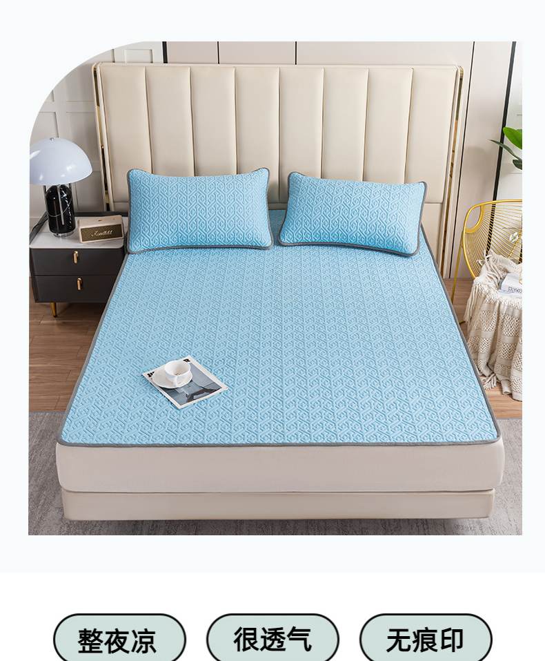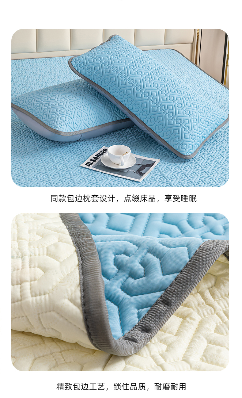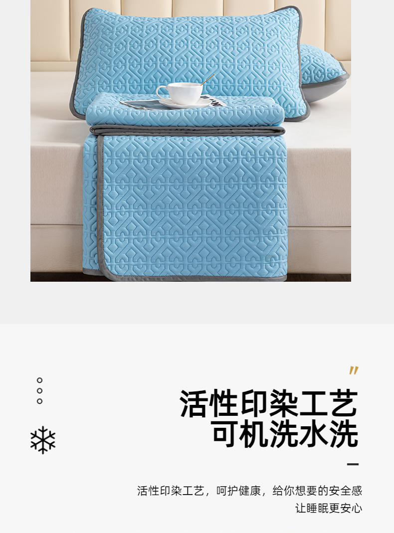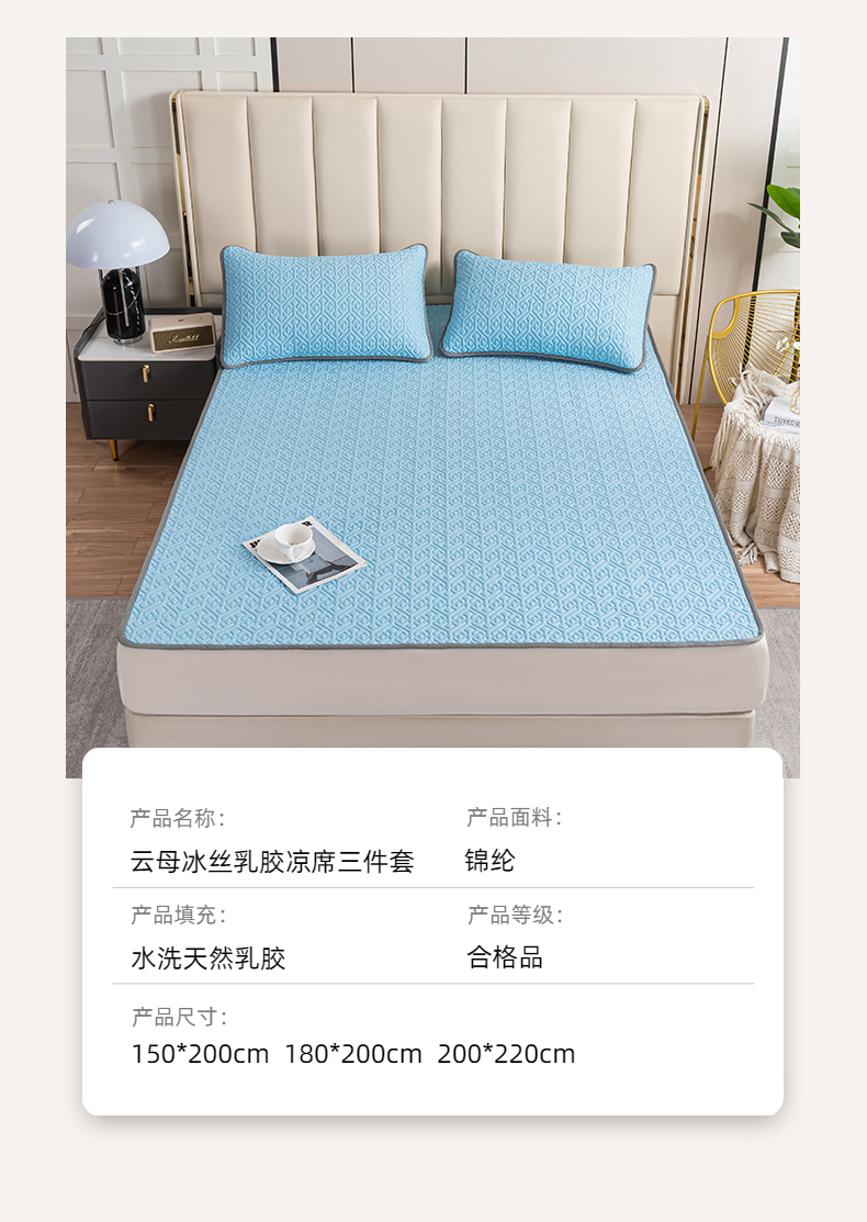 商品名称:美丽折家纺 2025新款云母冰丝乳胶凉席三件套系列 波尔多-蓝