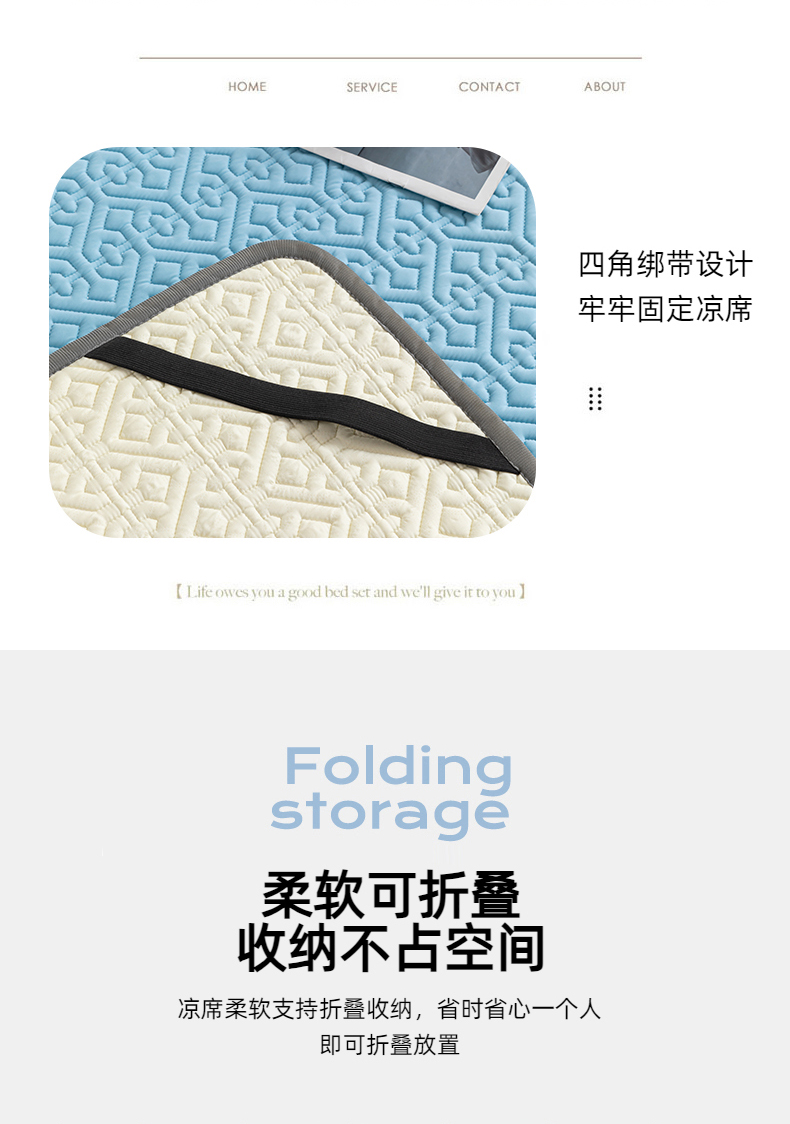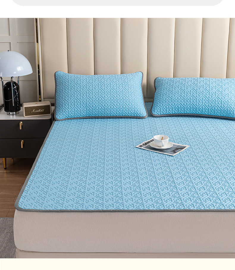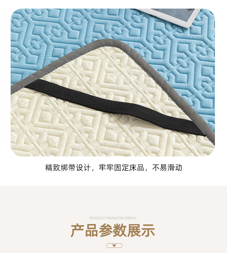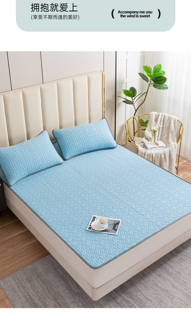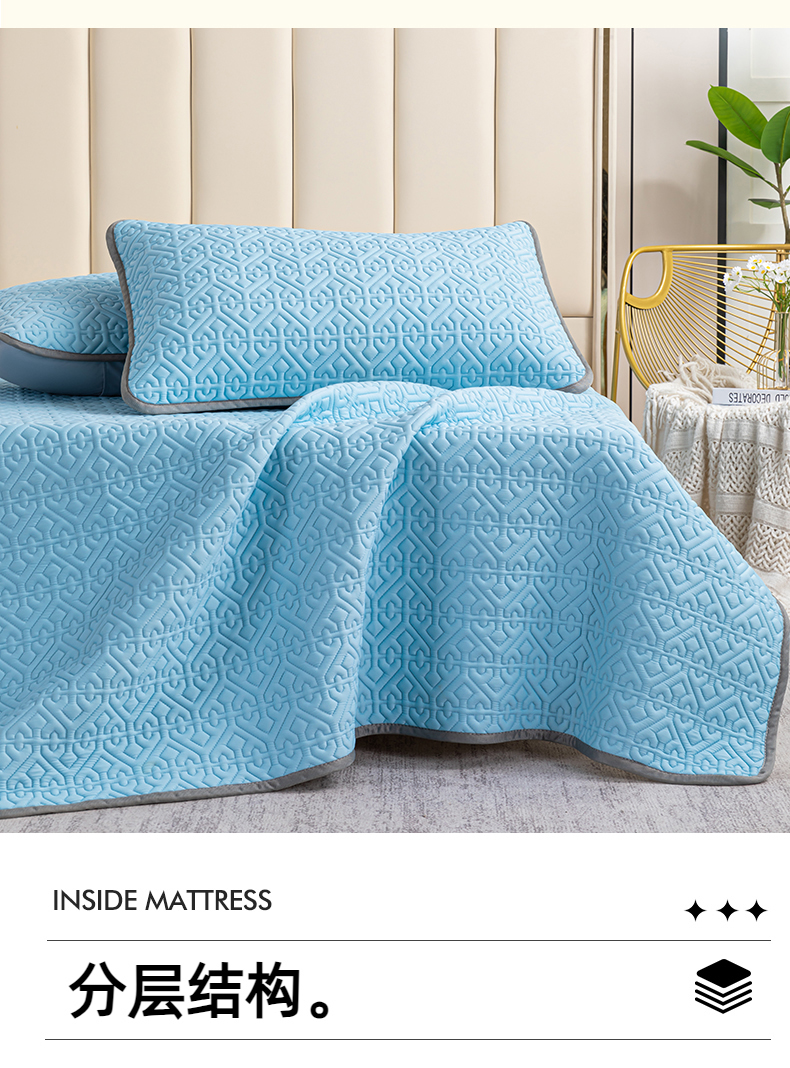 商品名称:美丽折家纺 2025新款云母冰丝乳胶凉席三件套系列 波尔多-蓝