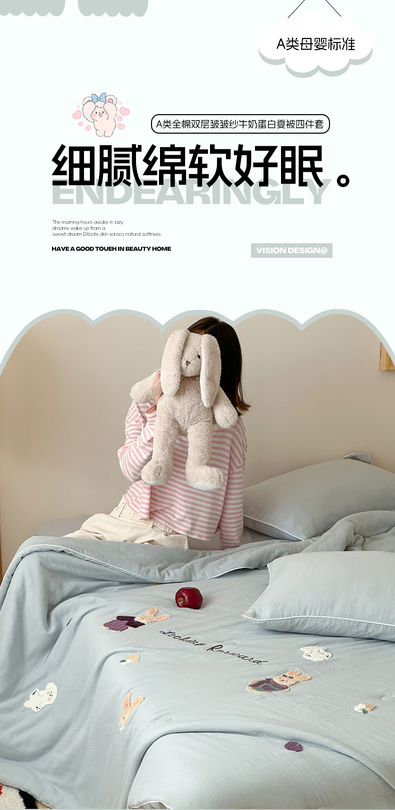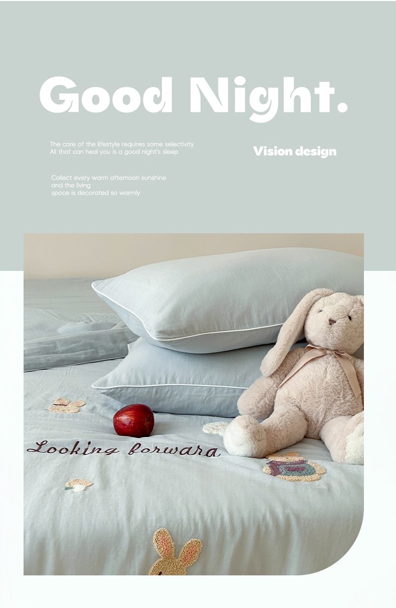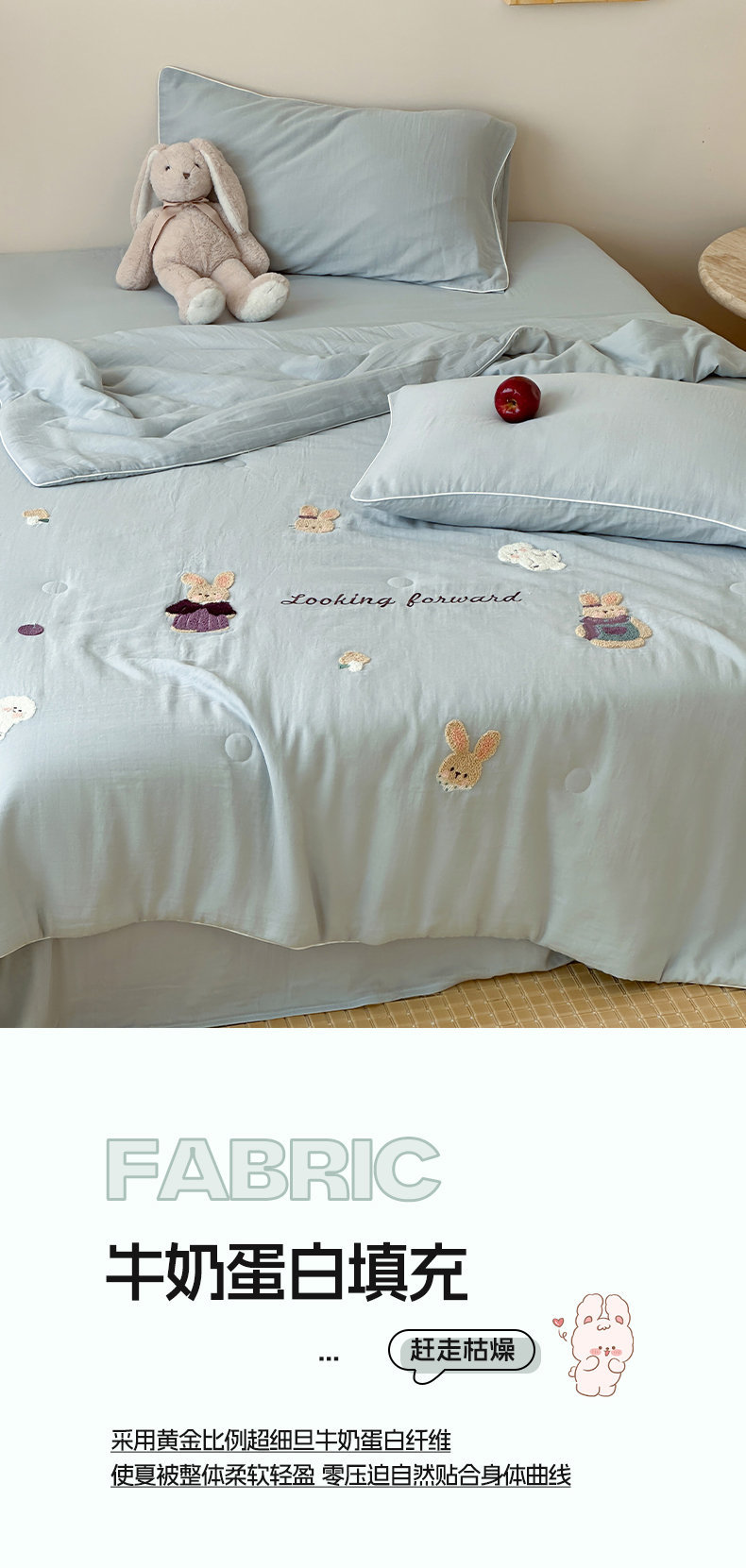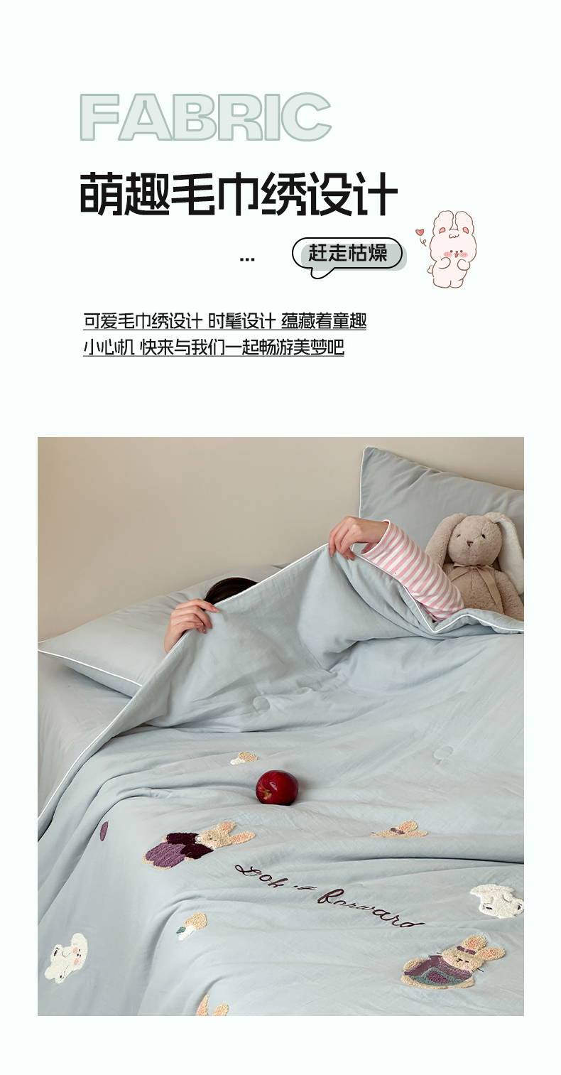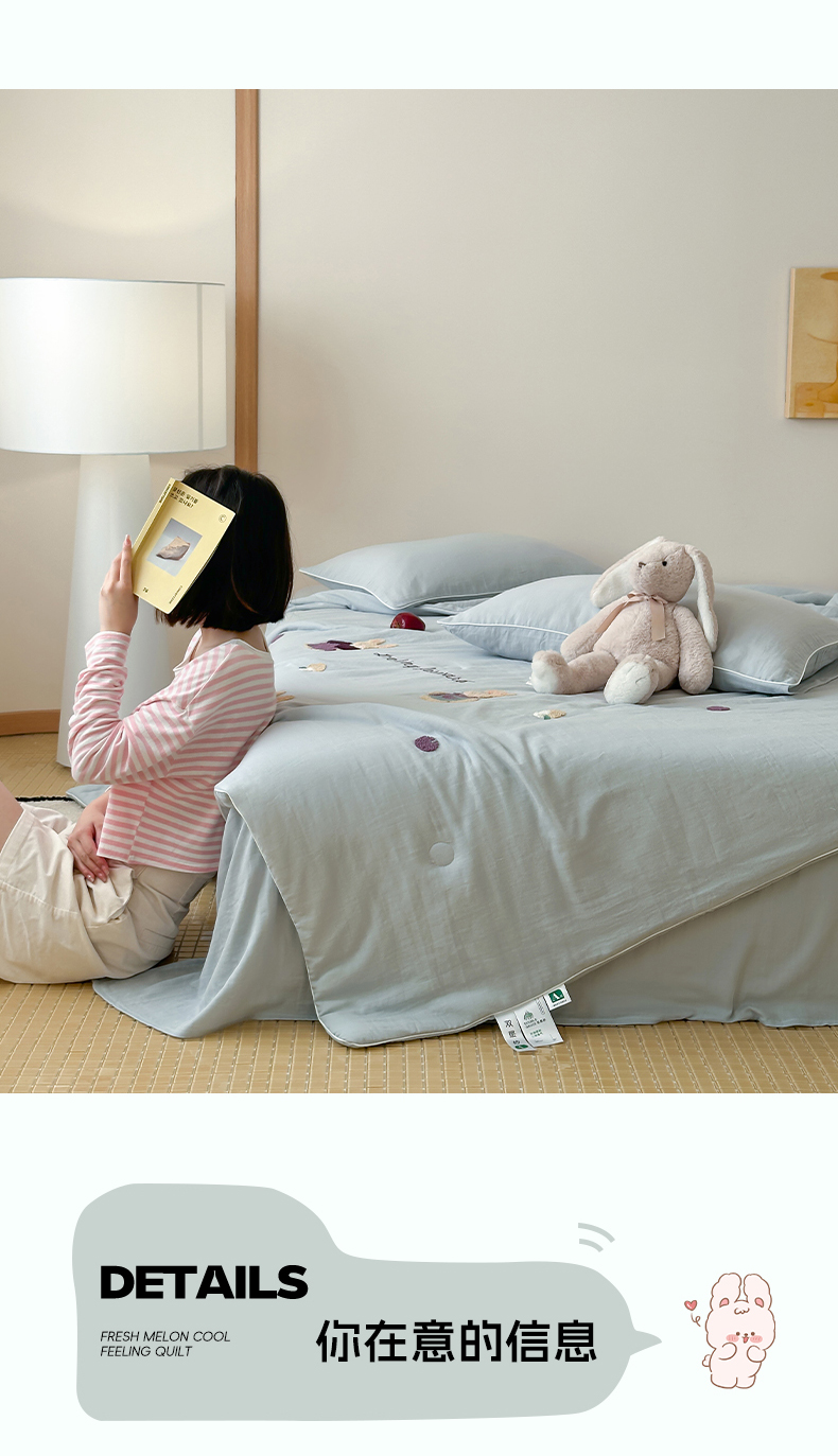 当前位置: 91家纺网 > 商品网购 > 床品套件 > 四件套 > 夏被四件套 > 一加一 2025新款A类全棉双层纱皱皱纱毛巾绣夏被四件套(可妮兔系列) 可妮兔-蓝
