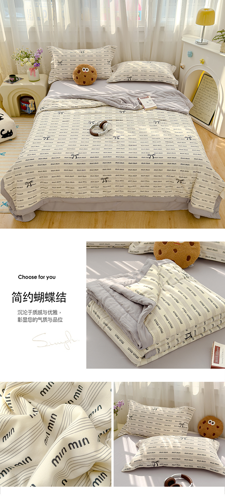 芯恋家居 2025新款针织棉双层纱夏被夏被四件套 轻奢风尚