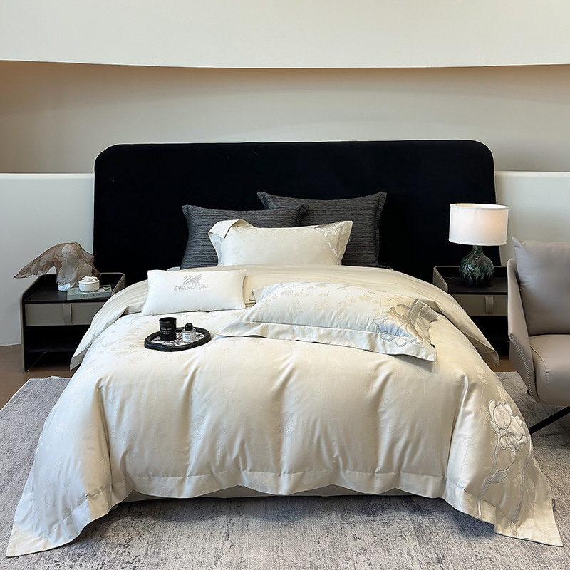 (总)若未家居2023新款轻奢意式50支全棉长绒棉四件套-水墨,贵族白,雾棕,烟蓝