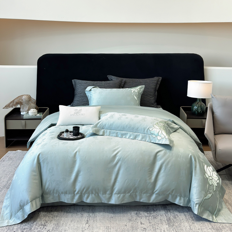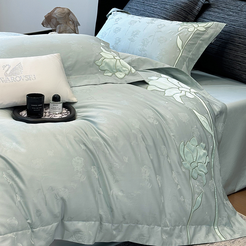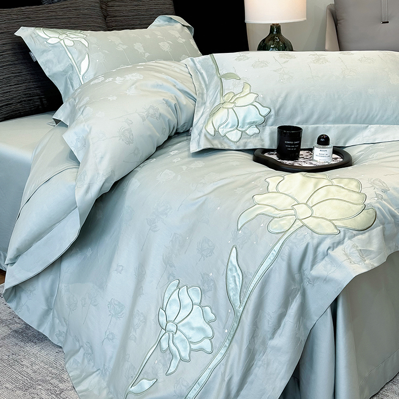 (总)若未家居 2023 新款高支高密长绒棉进口镂空款四件套 -爱法,橄榄绿,贵族红,皓月白,湖水蓝,羊脂玉