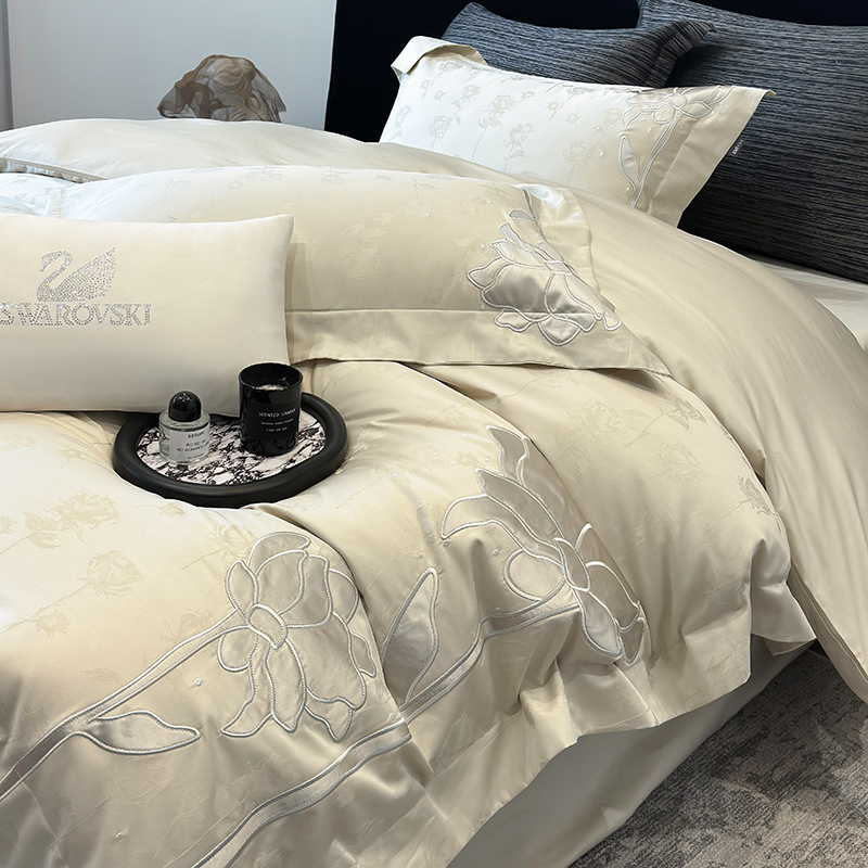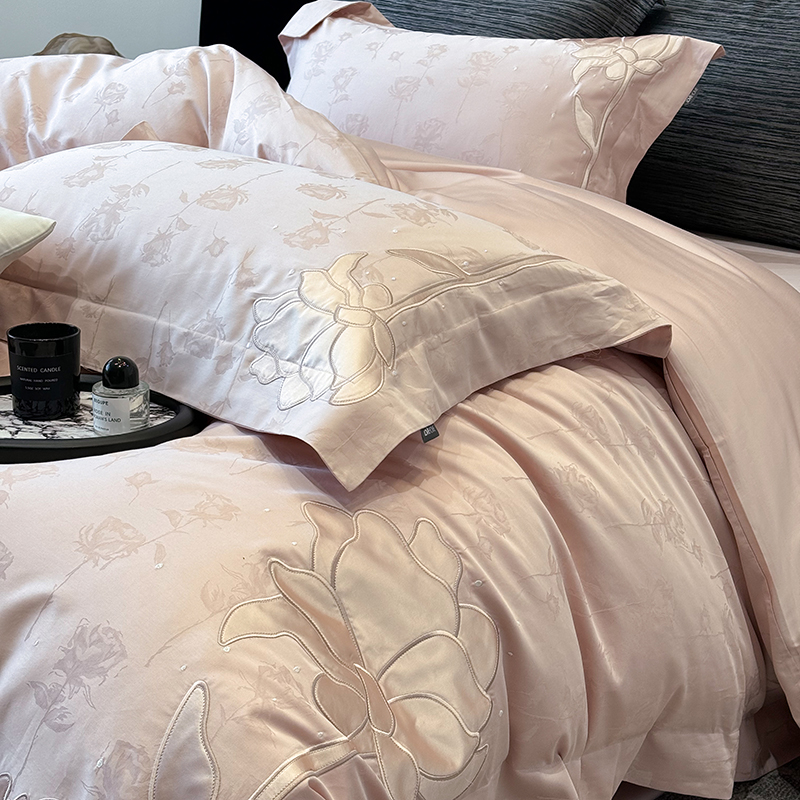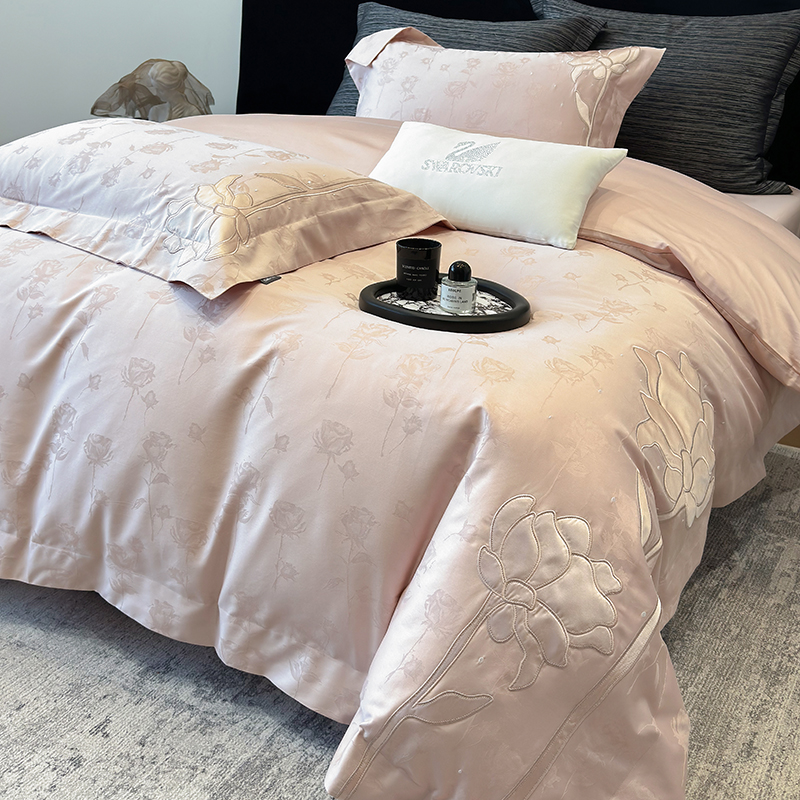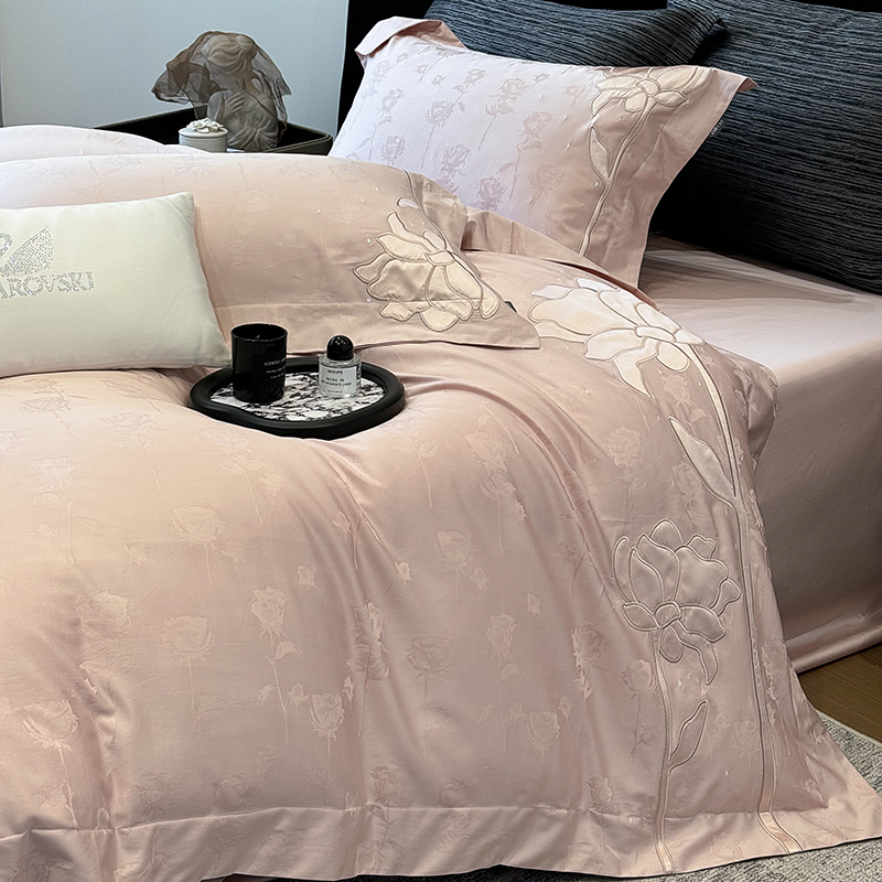 (总)若未 2023新款50支长绒棉镂空轻奢四件套-奢梵克,爱玛橘,宾利蓝,粉豆沙,贵族白,贵族红,气质灰,山灰色,天蓝
