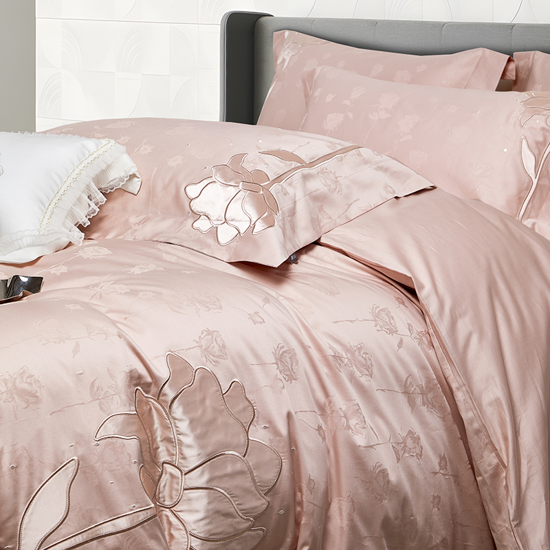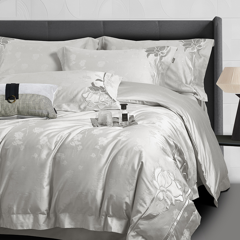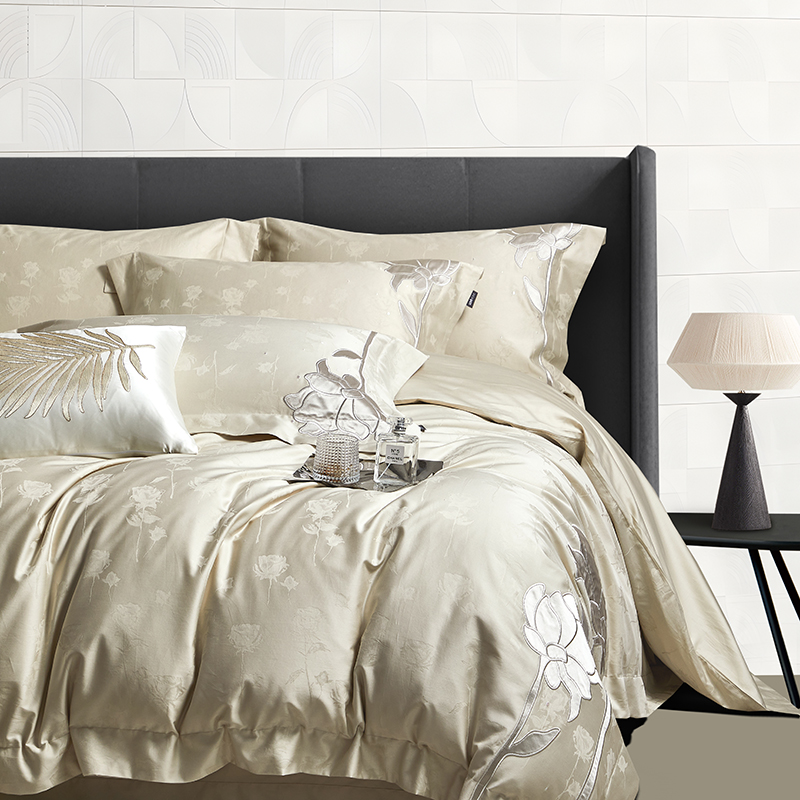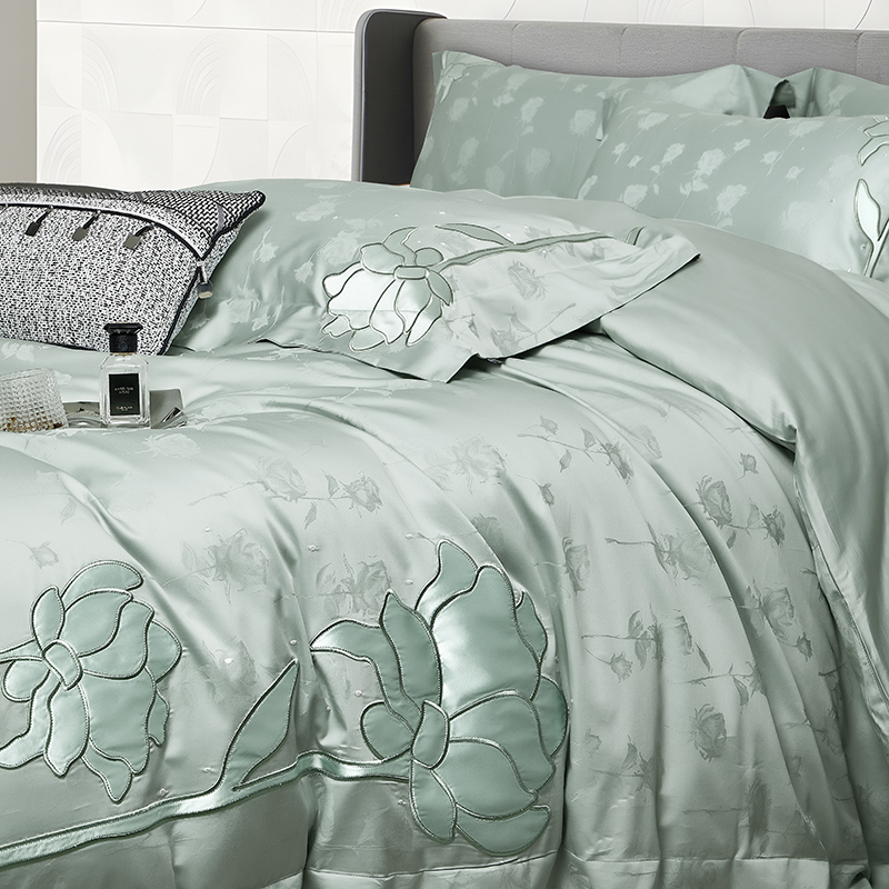 (总)若未家居 LOVEWE HOUSE 2025新款50S长绒棉提花800T锦缎贴布绣工艺四件套-博洛-相机拍
