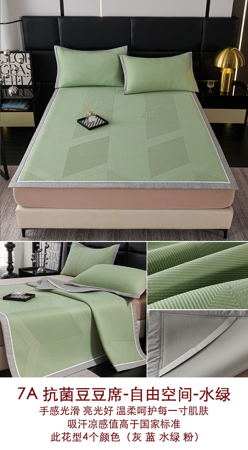 (总)席之家 2025新款高精密三纬可水洗冰提花丝凉席,莫奈-咖,莫奈-灰,莫奈-绿