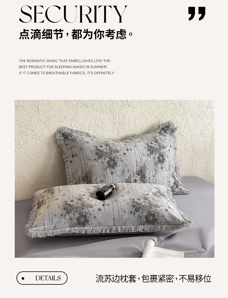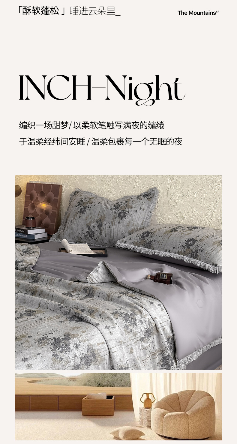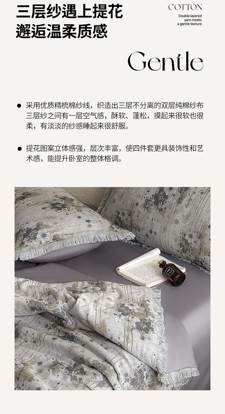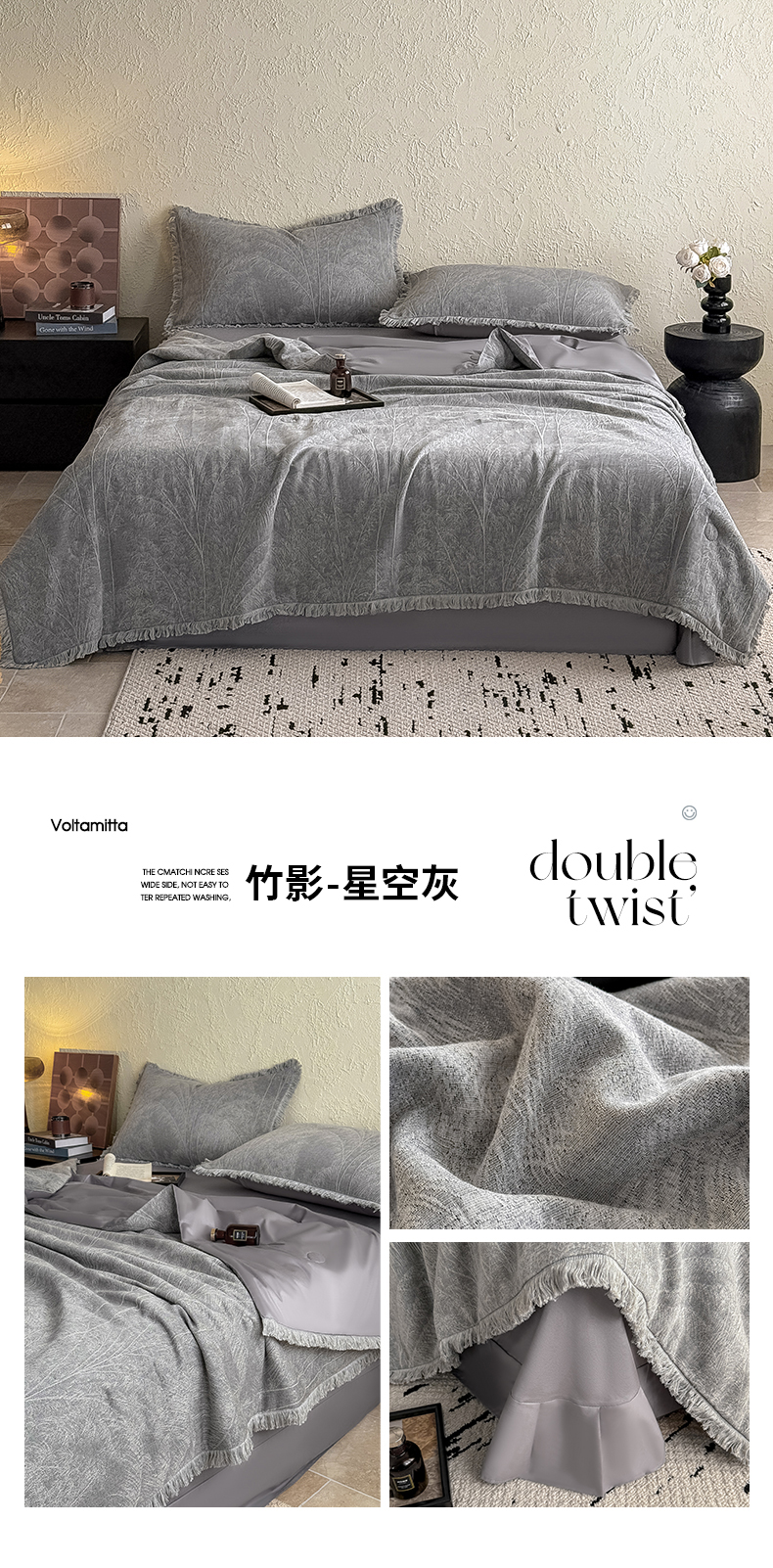 当前位置: 91家纺网 > 商品网购 > 床品套件 > 四件套 > 全棉活性四件套 > 2025新款全棉三层纱提花夏被四件套 花恋-黛绿