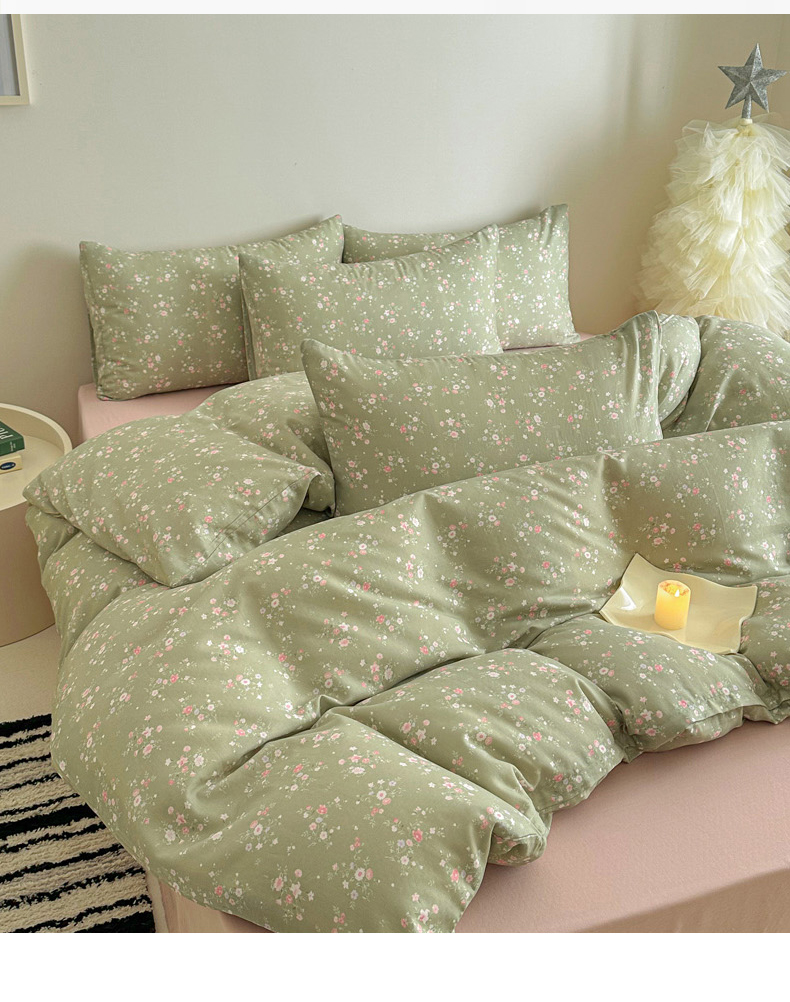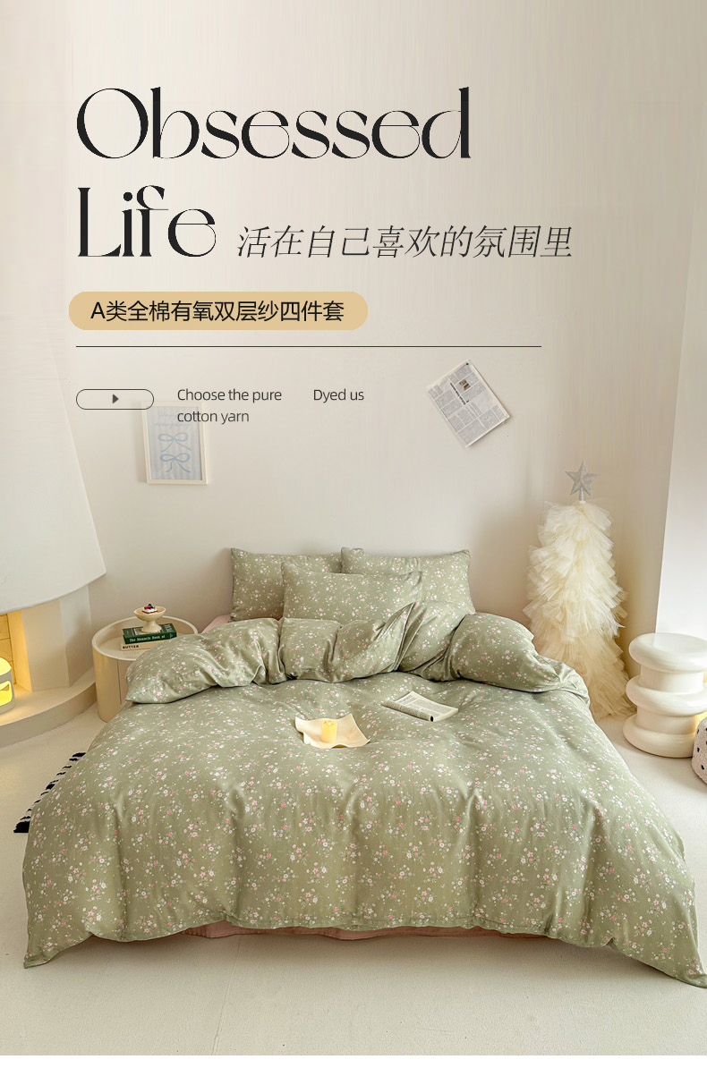 2025新款全棉有氧A类母婴级双层纱印花四件套 汀花里-浅绿