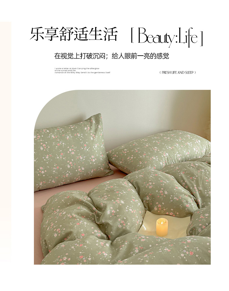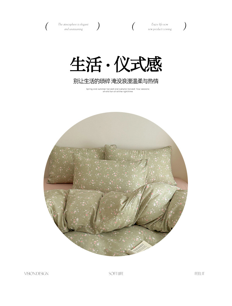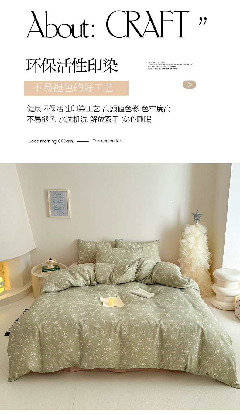 商品名称:2025新款全棉有氧A类母婴级双层纱印花四件套 汀花里-浅绿