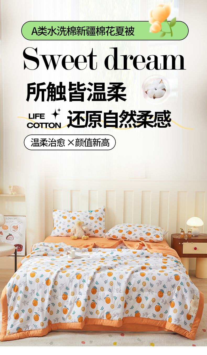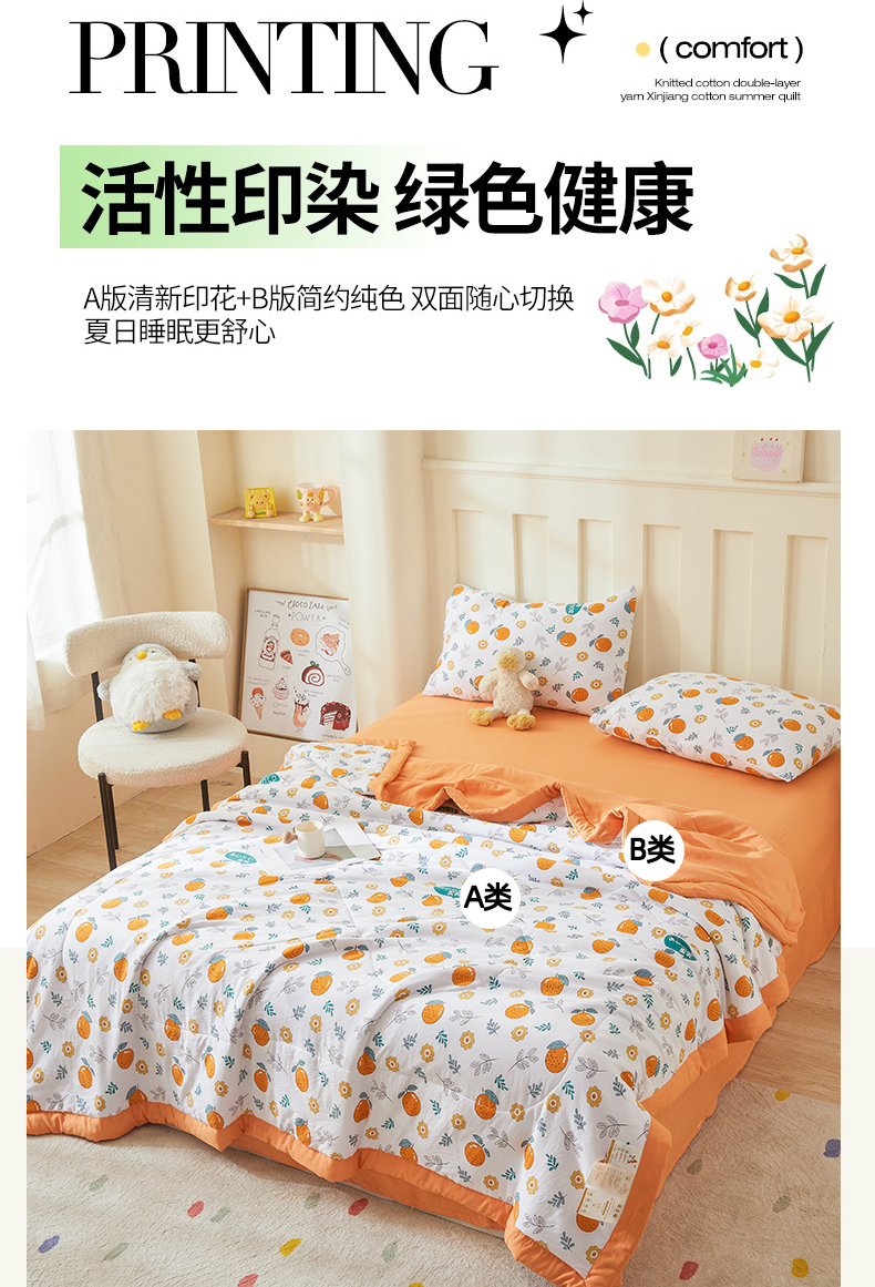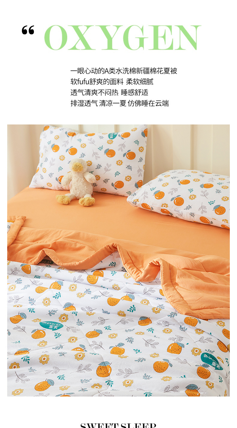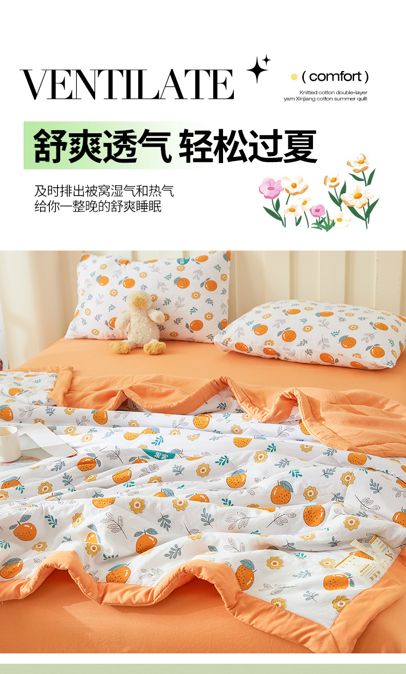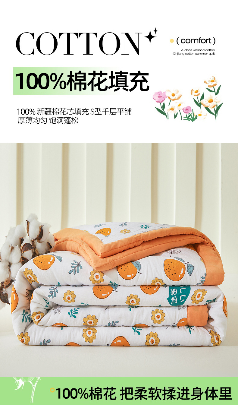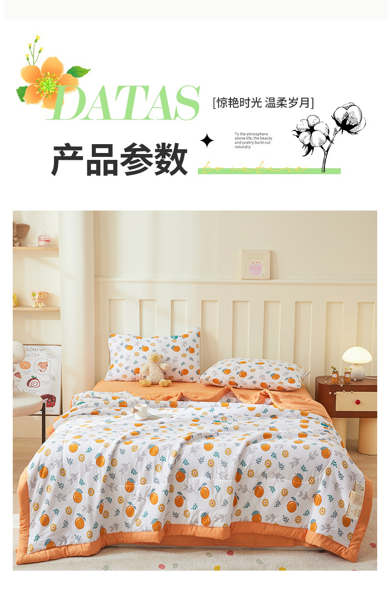 商品名称:2025新款小花款新疆棉花夏被【棉花含量100%】夏季空调被薄被子可机洗夏凉被 小橘子