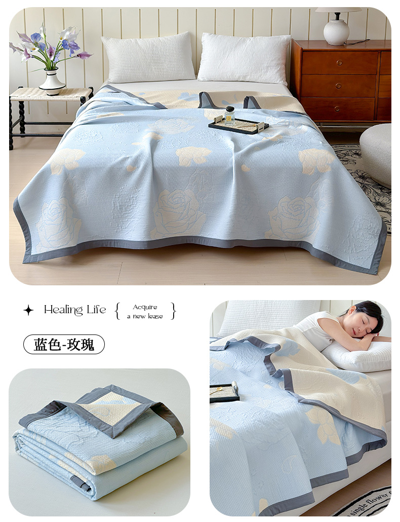 商品名称:2025新款A类纯棉针织三层纱提花多功能毯 粉色-玫瑰