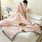 2025新款A类纯棉针织三层纱提花多功能毯 粉色-玫瑰