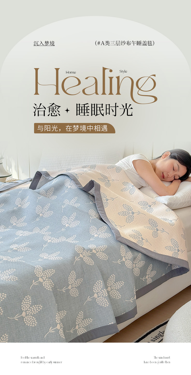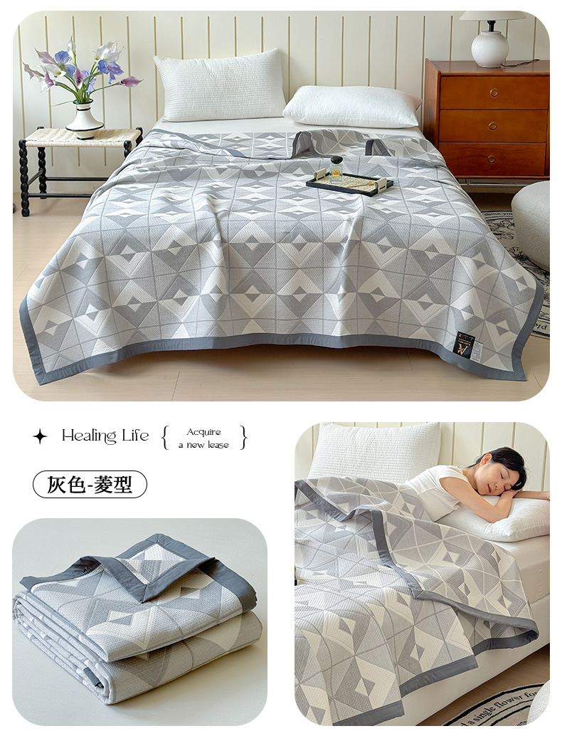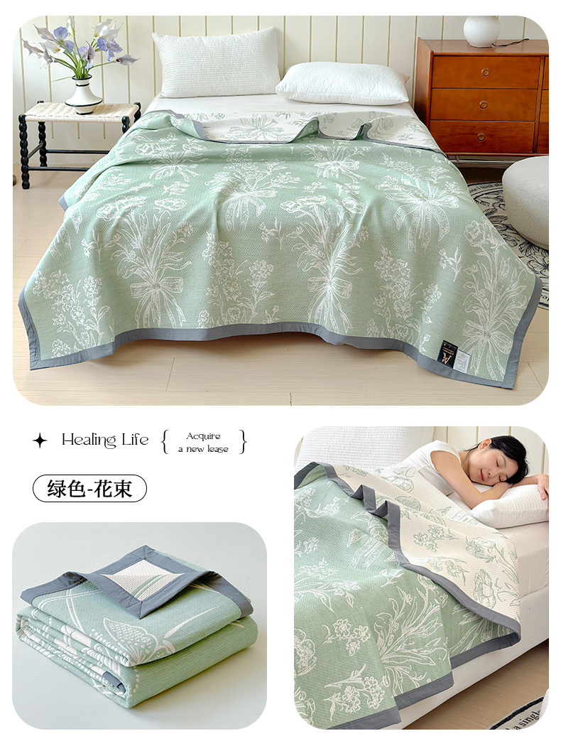 商品名称:2025新款A类纯棉针织三层纱提花多功能毯 蓝色-相思