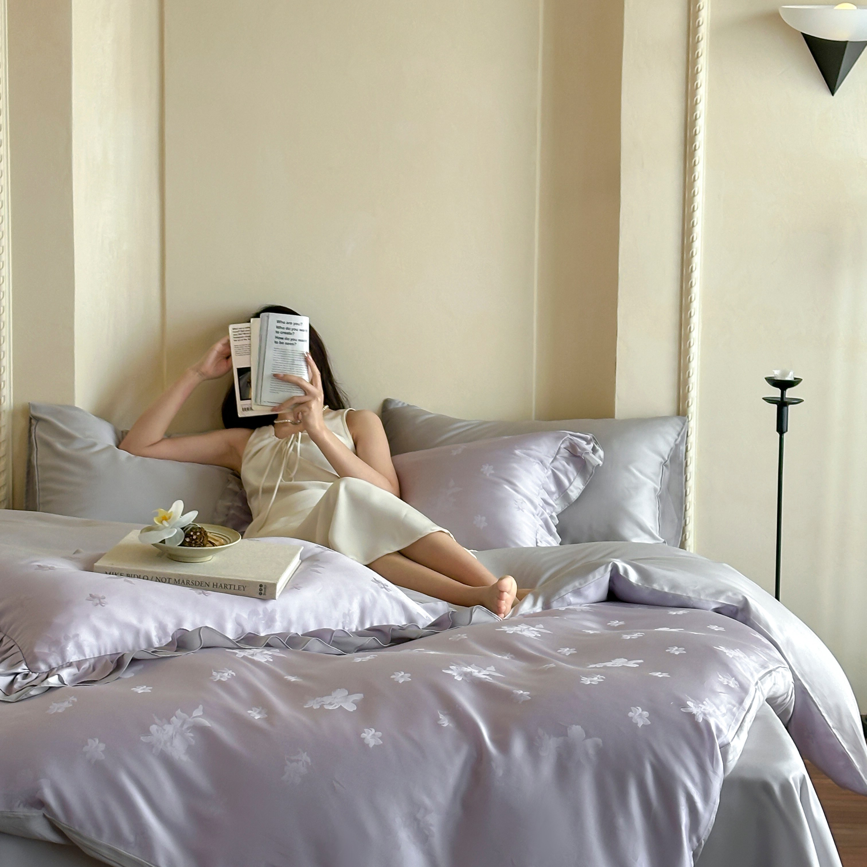 玉宇阁 2025新款60S进口兰精天丝印花大提花工艺四件套-莫莫咖momocha 莫莫咖-冷雾紫