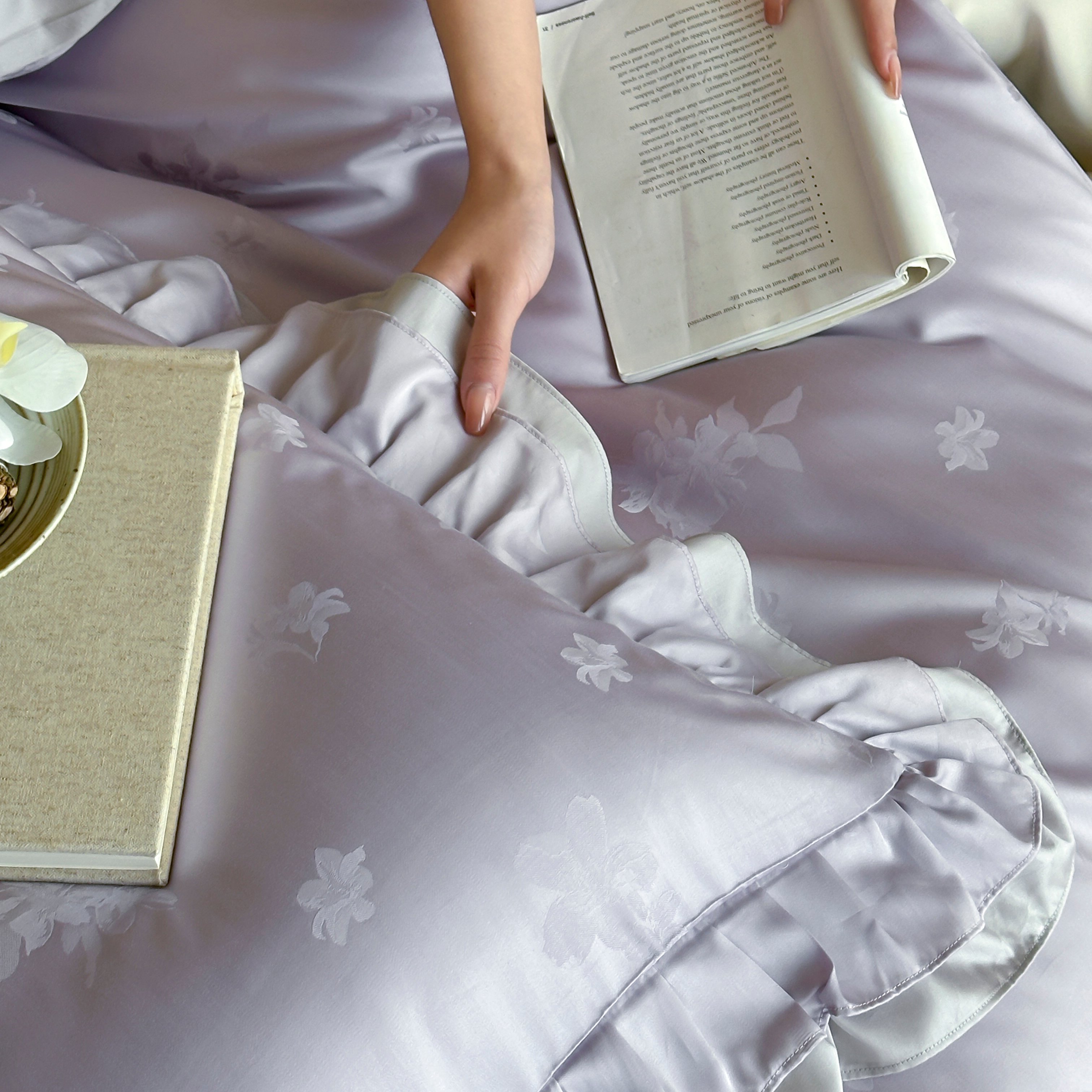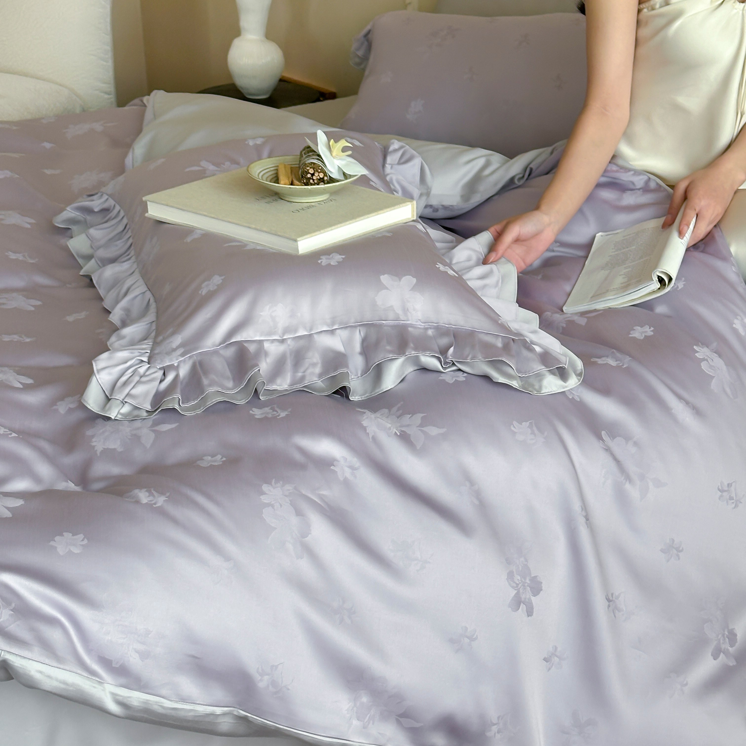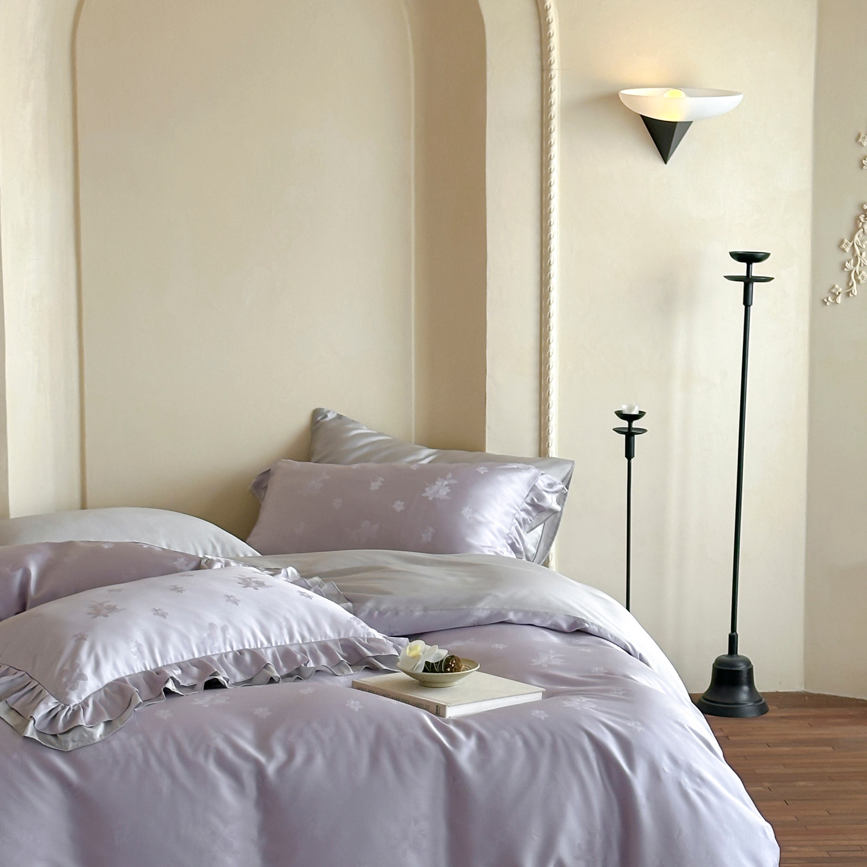 商品名称:玉宇阁 2025新款60S进口兰精天丝印花大提花工艺四件套-莫莫咖momocha 莫莫咖-冷雾紫
